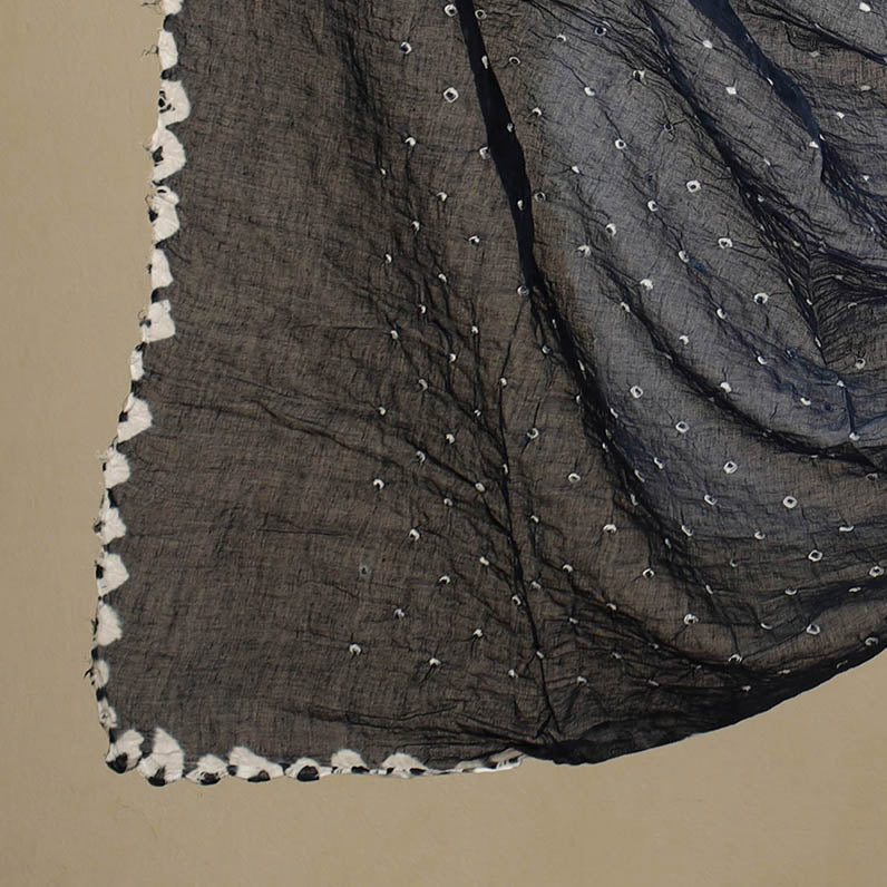 Black - Kutch Handwoven Merino Wool Bandhani Tie-Dye Shawl 89