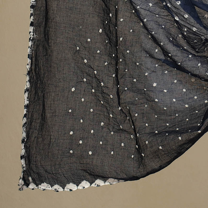 Black - Kutch Handwoven Merino Wool Bandhani Tie-Dye Shawl 89