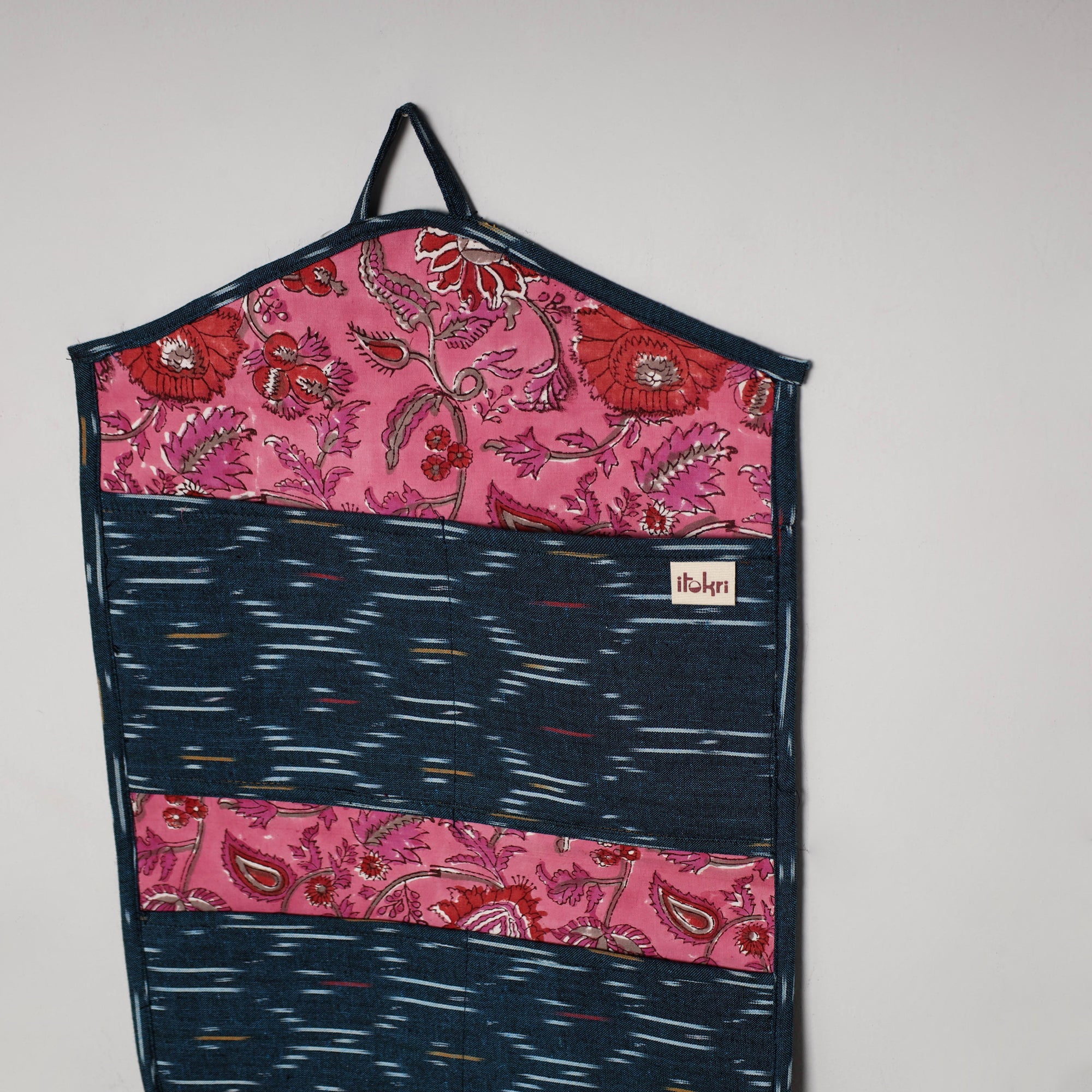 Organize your letters and essentials in style with this 4 pockets handcrafted cotton wall hanging letter holder. Made from carefully selected handmade textiles, each piece reflects the beauty and uniqueness of artisanal fabric. Designed to hang effortlessly on your wall, it features four spacious pockets to keep your mail, notes, and small items neatly arranged. Perfect for adding a touch of ethnic charm to your home decor.