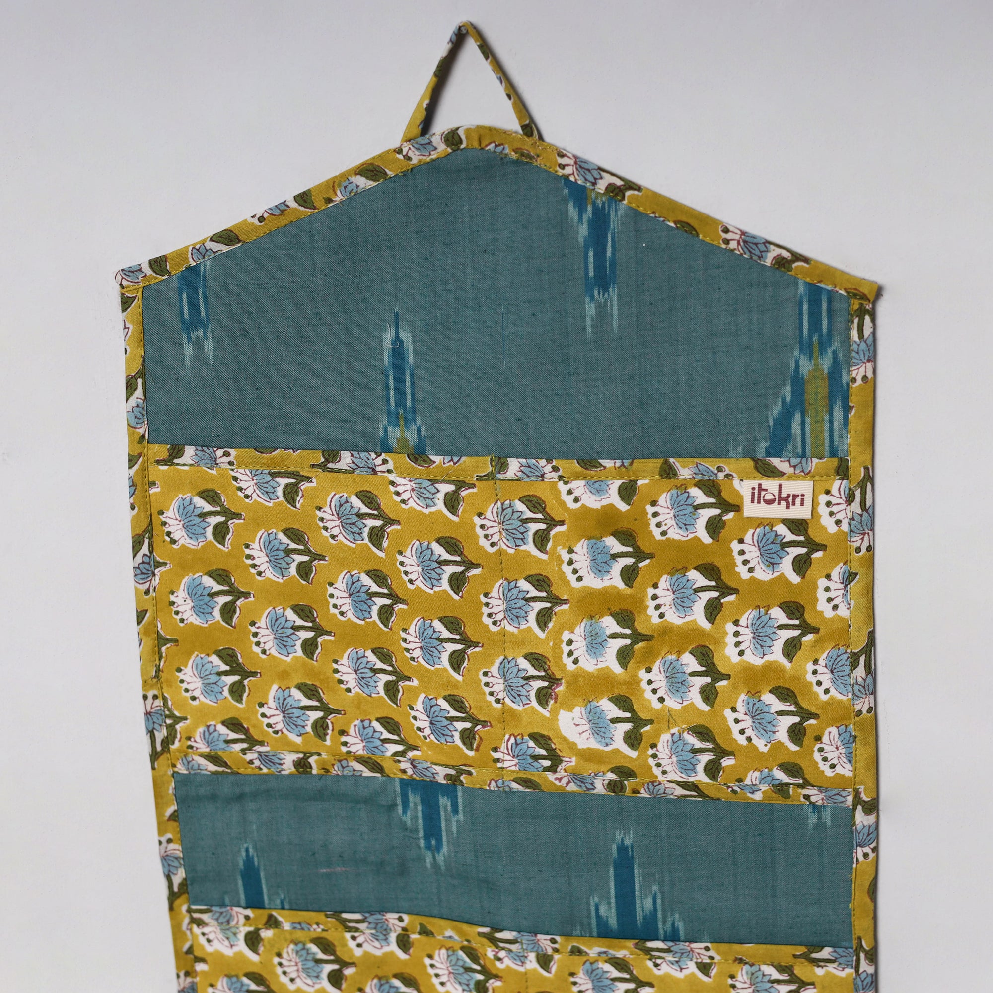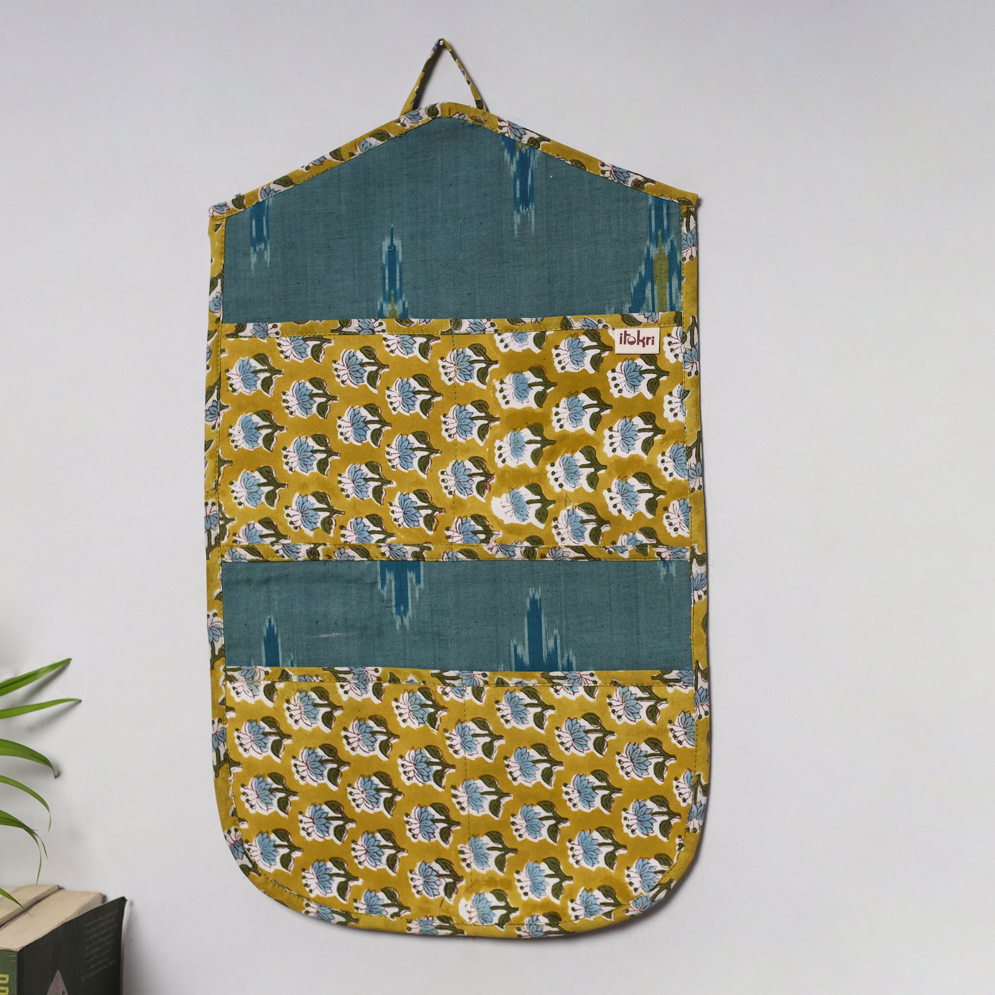 Organize your letters and essentials in style with this 4 pockets handcrafted cotton wall hanging letter holder. Made from carefully selected handmade textiles, each piece reflects the beauty and uniqueness of artisanal fabric. Designed to hang effortlessly on your wall, it features four spacious pockets to keep your mail, notes, and small items neatly arranged. Perfect for adding a touch of ethnic charm to your home decor.