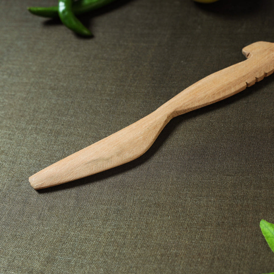 Handcrafted udayagiri wooden paper knife made in Udayagiri town of Nellore district, Andhra Pradesh. Udayagiri cutlery is known for its intricate carvings and fine proportions and is made by a few master craftspersons of the region. This woodcraft continues a tradition that is about 150 years old. Material for making the kitchen items are nardi wood, devadari, bikki chakka and kaldi chakka. The smaller items like spoons, forks and paper knifes by nardi and bikki wood. Bigger spoons and forks are made out of harder wood called kaldi.