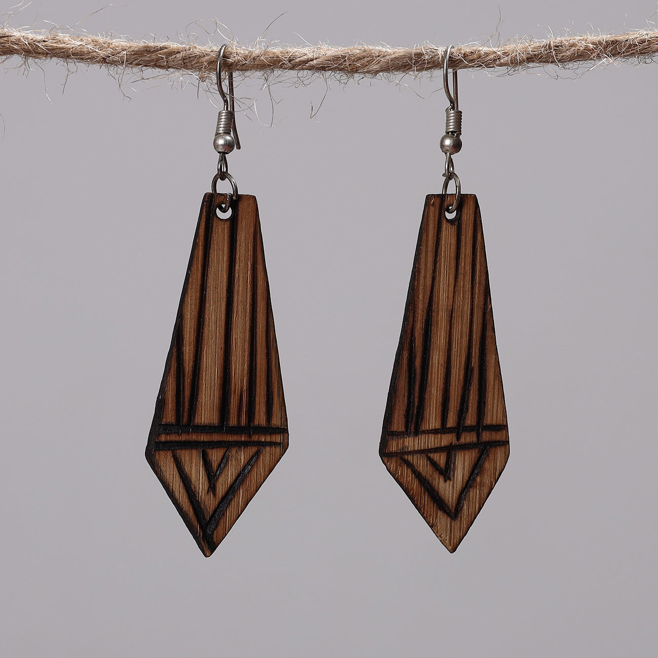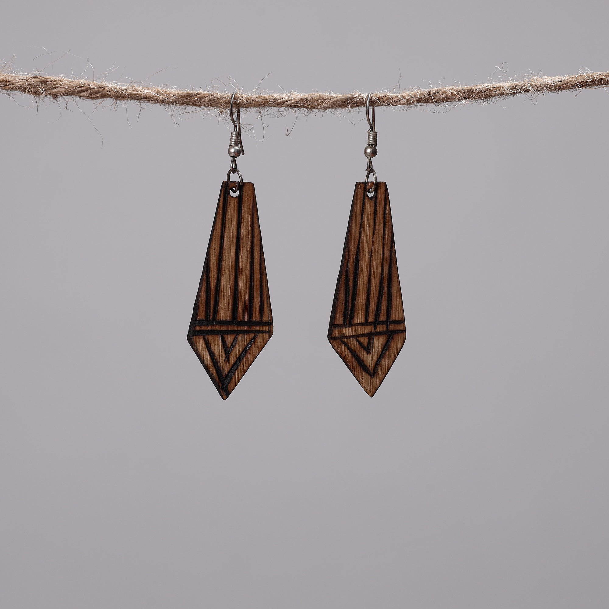 Feather weight earrings made of natural brown bamboo wood & designs have been hand carved with a hot knife by master artisan Jagat Ram from Bastar, Chhattisgarh. Perfect for everyday wear, festive looks, or pairing with ethnic and boho outfits.