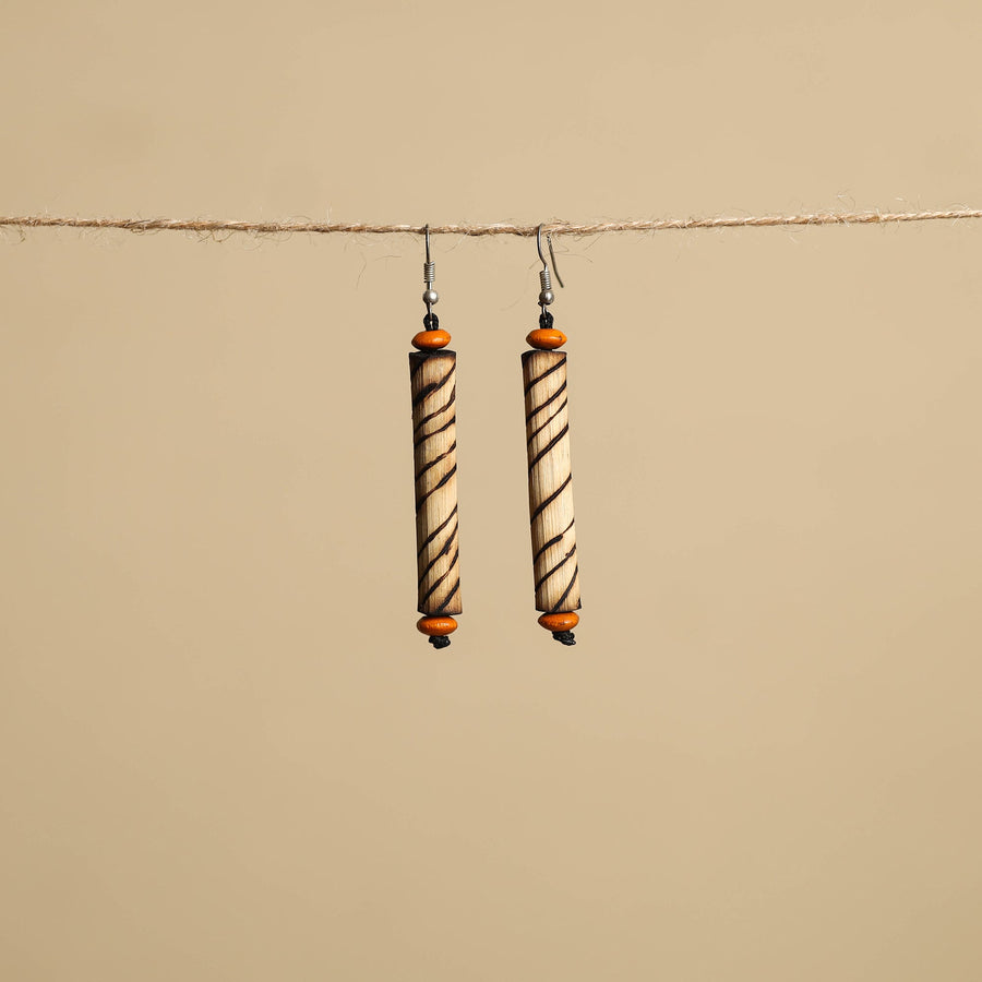 Feather weight earrings made of natural brown bamboo wood & designs have been hand carved with a hot knife by master artisan Jagat Ram from Bastar, Chhattisgarh. Perfect for everyday wear, festive looks, or pairing with ethnic and boho outfits.