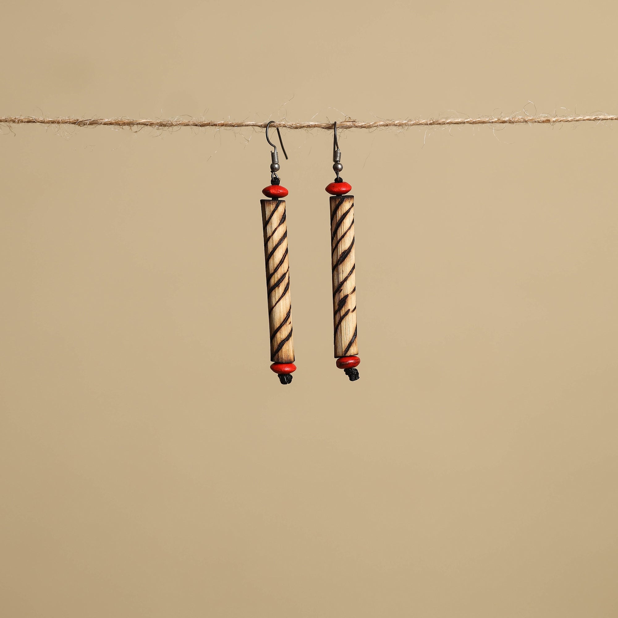 Feather weight brown earrings made of natural bamboo wood & designs have been hand carved with a hot knife by master artisan Jagat Ram from Bastar, Chhattisgarh. Perfect for everyday wear, festive looks, or pairing with ethnic and boho outfits.