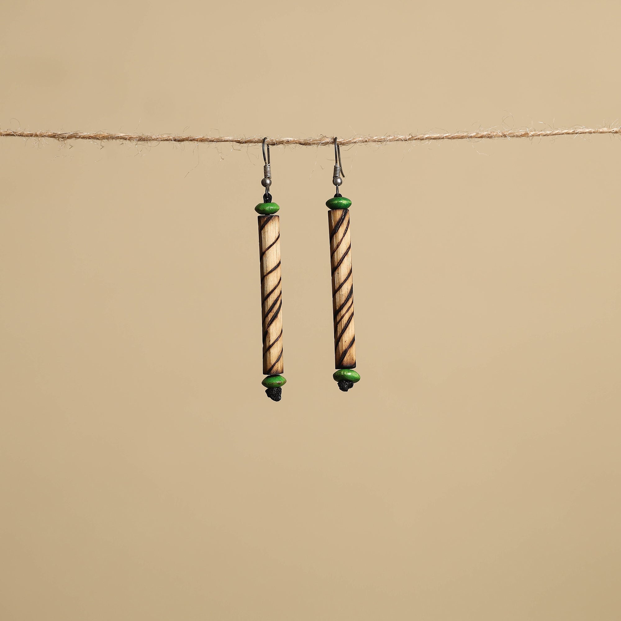 Feather weight beige earrings made of natural bamboo wood & designs have been hand carved with a hot knife by master artisan Jagat Ram from Bastar, Chhattisgarh. Perfect for everyday wear, festive looks, or pairing with ethnic and boho outfits.