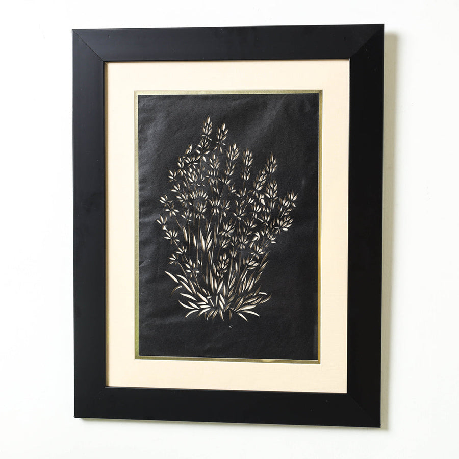 This original sanjhi artwork/painting made of handmade papers and framed with a fiber frame. Sanjhi Art from Mathura, is a truly unique craft form that features exquisite designs and intricate picture motifs, cut into paper. Craftsmen use specially designed scissors to accomplish this process.