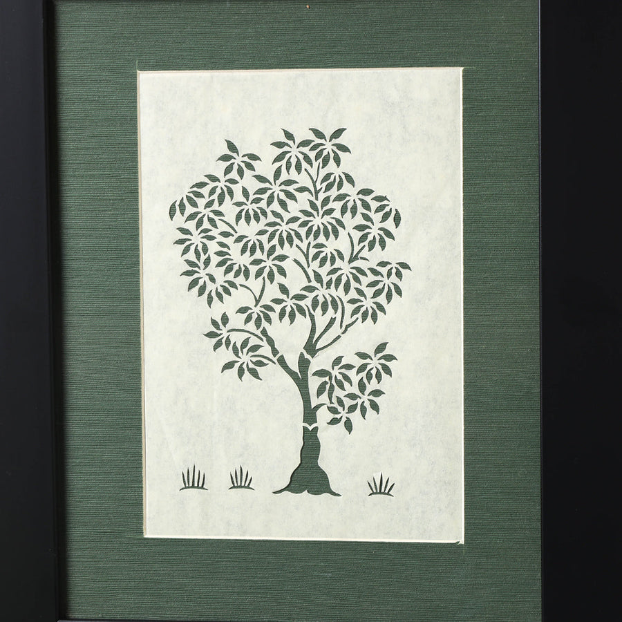 This original sanjhi artwork/painting made of handmade papers and framed with a fiber frame. Sanjhi Art from Mathura, is a truly unique craft form that features exquisite designs and intricate picture motifs, cut into paper. Craftsmen use specially designed scissors to accomplish this process.