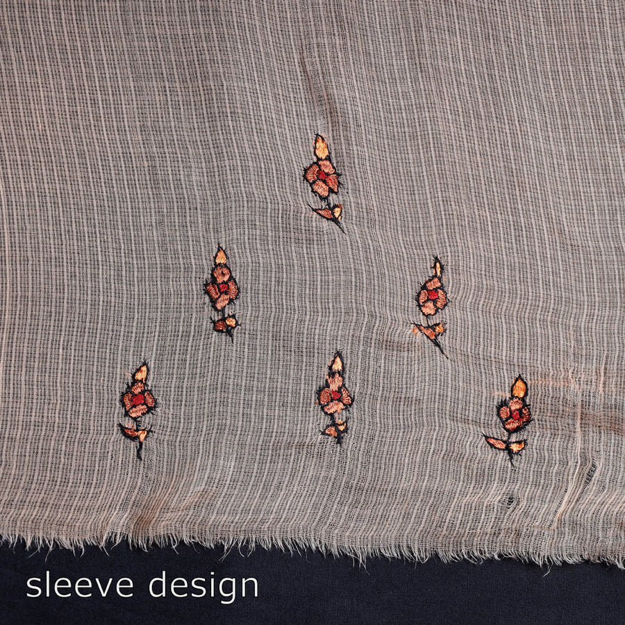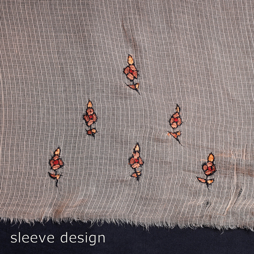Fine kashida thread work hand embroidery handloom kota doria cotton kurta material by Zahoor Ahmed from Harwan, Kashmir.