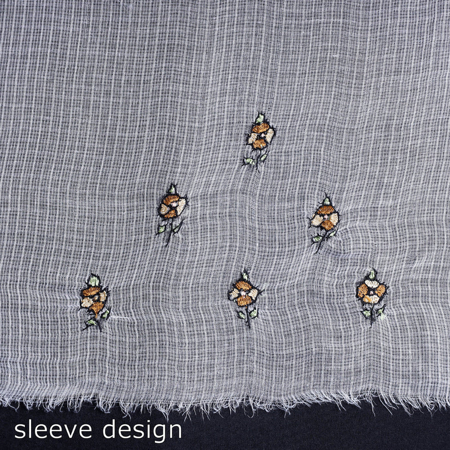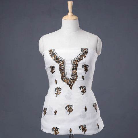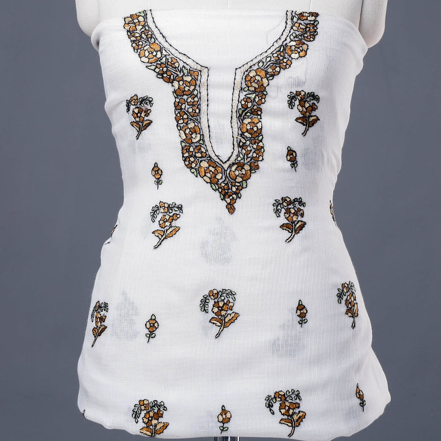 Fine kashida thread work hand embroidery handloom kota doria cotton kurta material by Zahoor Ahmed from Harwan, Kashmir.
