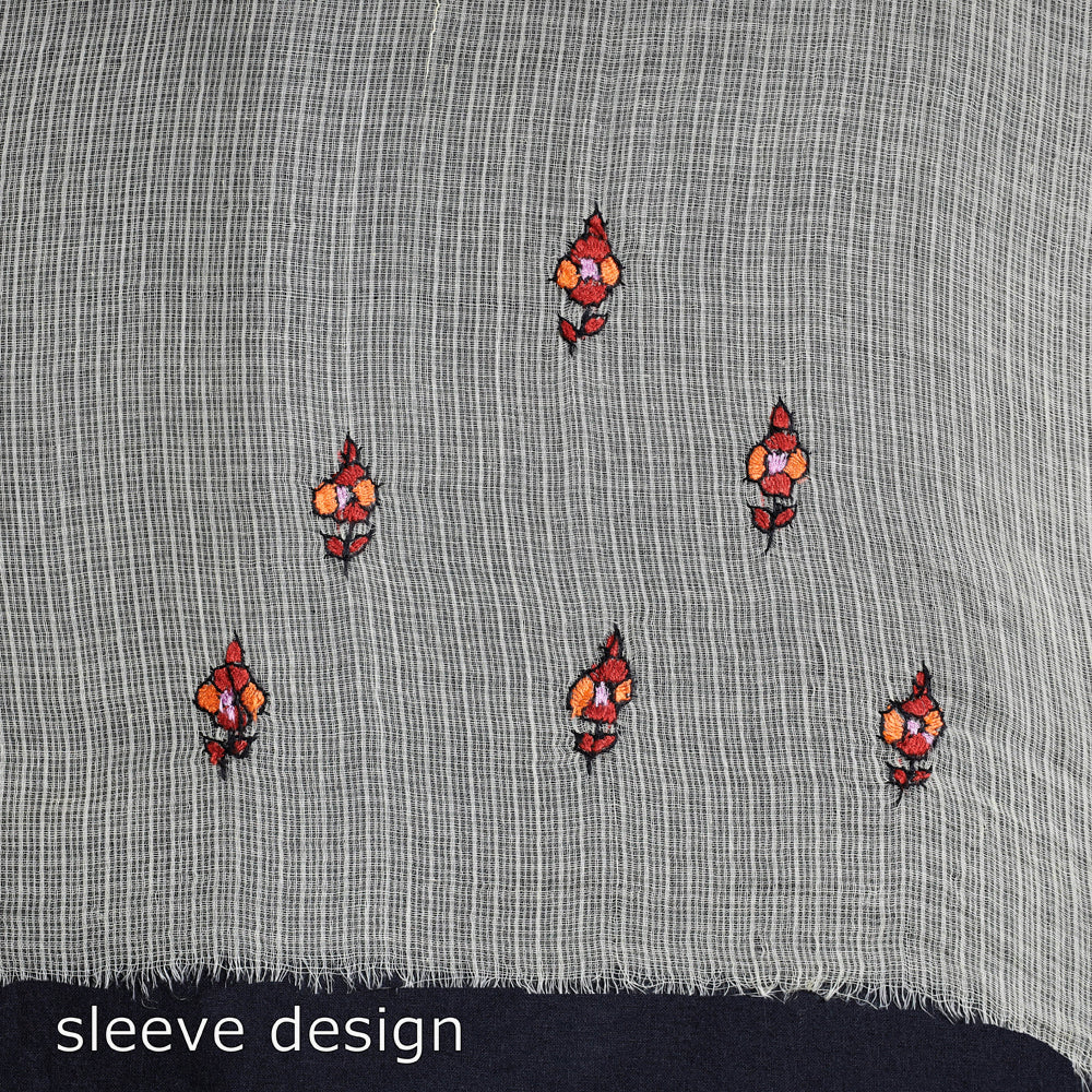 Fine kashida thread work hand embroidery handloom kota doria cotton kurta material by Zahoor Ahmed from Harwan, Kashmir.