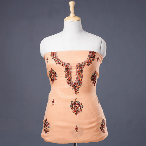 Fine kashida thread work hand embroidery handloom kota doria cotton kurta material by Zahoor Ahmed from Harwan, Kashmir.