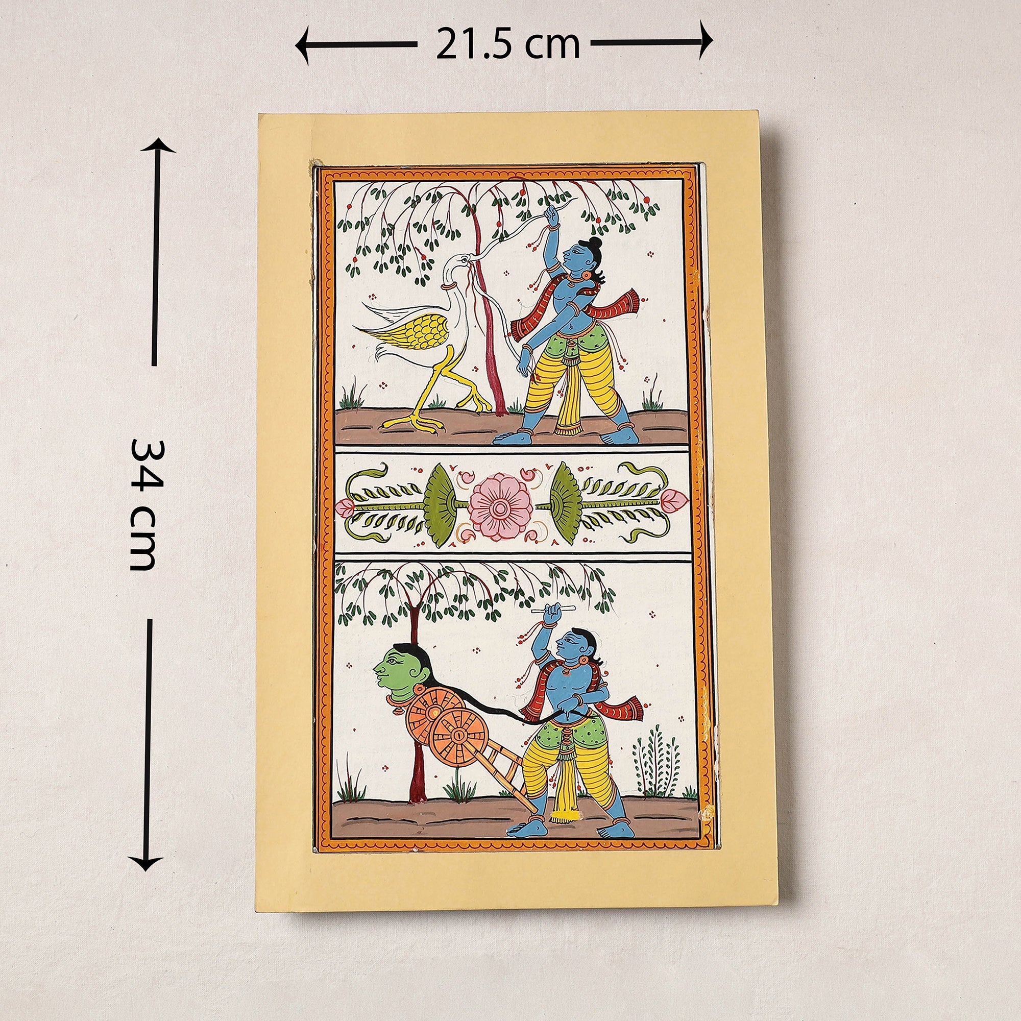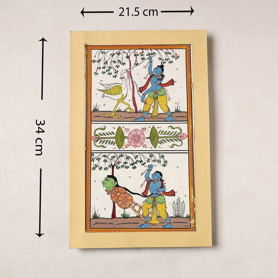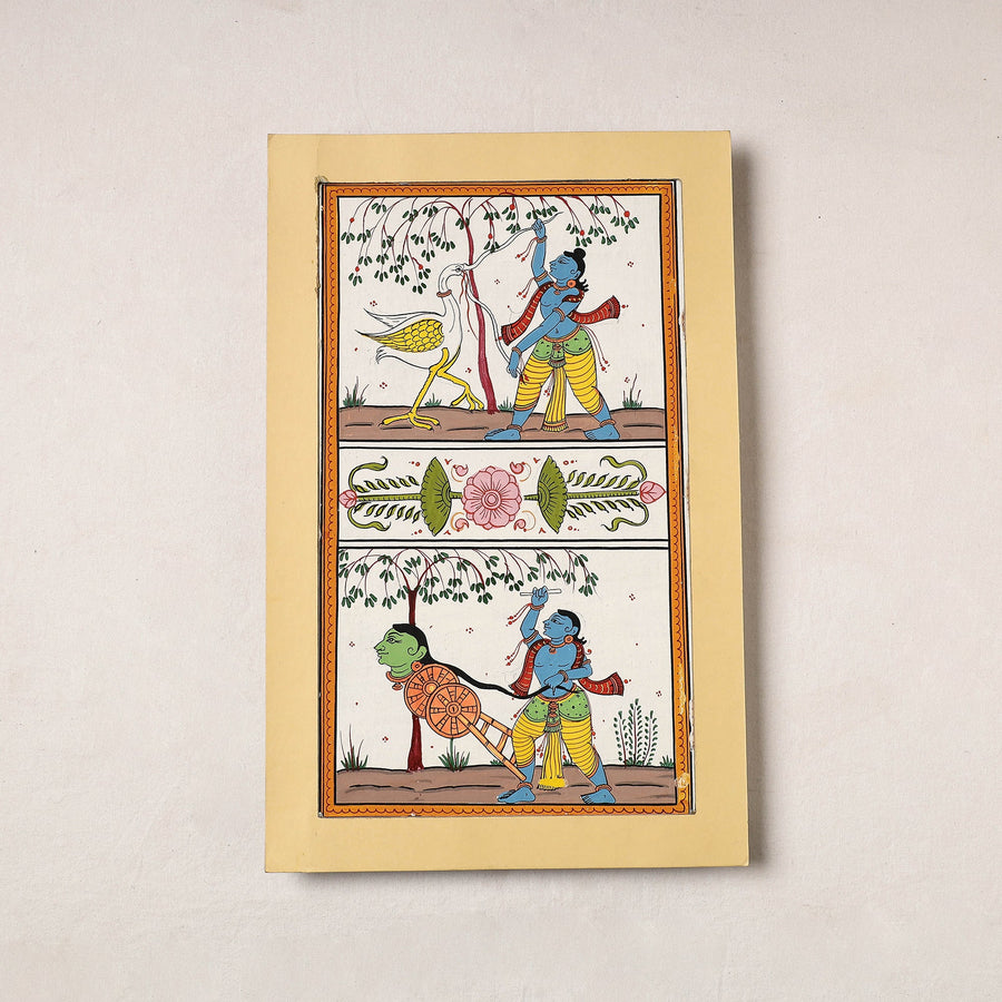 Traditional hand-painted painting with natural colours on handmade paper. This classical Pattachitra art comes from Danda Sahi Balia, Odisha from the family of Dilip Kumar. A wonderful painting for the discerning decor aficionado or gift for an art lover. These are priceless collectibles.