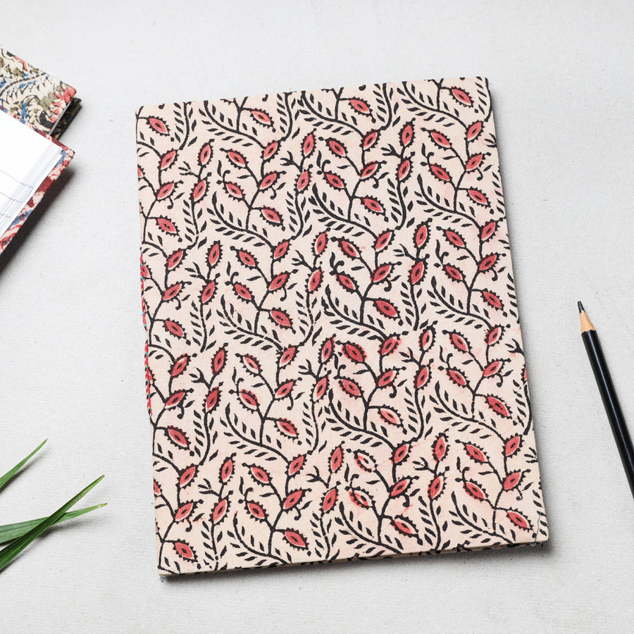 | Material | Kalamkari block print fabric embellished soft bound cover notebook with handmade papers. This paper is made of cotton, paper and other natural fibre waste recycled in an eco-friendly manner without the use of chemicals. Hand made by master artisans who maintain careful personal attention to detail. They are highly skilled in a variety of bookbinding and handmade stationery manufacturing techniques. |