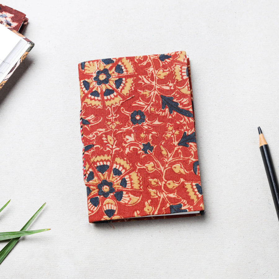 | Material | Kalamkari block print fabric embellished soft bound cover notebook with handmade papers. This paper is made of cotton, paper and other natural fibre waste recycled in an eco-friendly manner without the use of chemicals. Hand made by master artisans who maintain careful personal attention to detail. They are highly skilled in a variety of bookbinding and handmade stationery manufacturing techniques. |