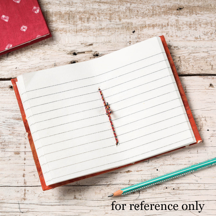 | Material | Hand made papers with grey bandhani tie-dye fabric embellished soft bound cover notebook. This paper is made of cotton, paper and other natural fibre waste recycled in an eco-friendly manner without the use of chemicals. Hand made by master artisans who maintain careful personal attention to detail. They are highly skilled in a variety of bookbinding and handmade stationery manufacturing techniques. |