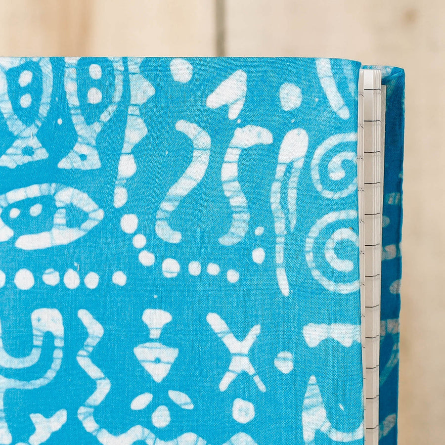 | Material | Blue batik printed fabric embellished hard bound cover notebook with handmade papers. This paper is made of cotton, paper and other natural fibre waste recycled in an eco-friendly manner without the use of chemicals. Hand made by master artisans who maintain careful personal attention to detail. They are highly skilled in a variety of bookbinding and handmade stationery manufacturing techniques. |