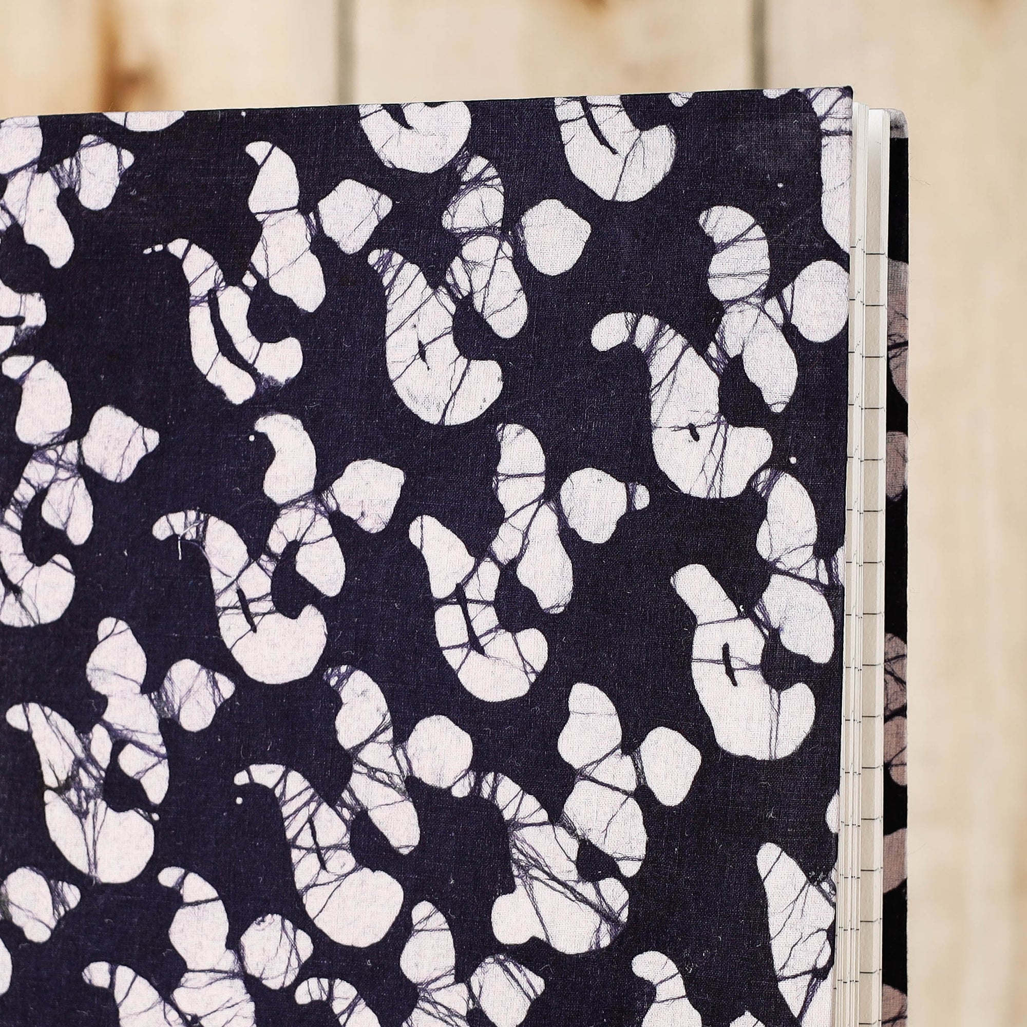 | Material | Blue batik printed fabric embellished hard bound cover notebook with handmade papers. This paper is made of cotton, paper and other natural fibre waste recycled in an eco-friendly manner without the use of chemicals. Hand made by master artisans who maintain careful personal attention to detail. They are highly skilled in a variety of bookbinding and handmade stationery manufacturing techniques. |