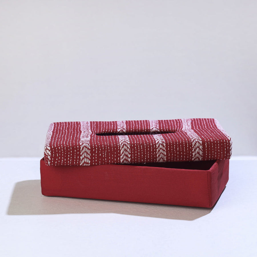 Fine quality maroon handcrafted kantha work tissue box from West Bengal. Made from hardboard, the box is lined with hand kantha work fabric. This tissue box is a beautiful and decorative box especially made for keeping tissues and paper napkins. Long lasting & sturdy material.