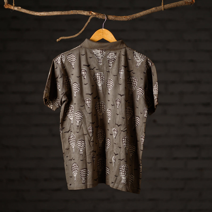 Fine quality pure cotton natural dyed special hand block printed unisex polo collar half sleeve t-shirt. Contemporary designs made through traditional processes, by skilled fourth generation textile printers in Rajasthan. This slow fashion, hand block printed cotton shirt brings back the love for traditional skills, with a modern aesthetic and design.