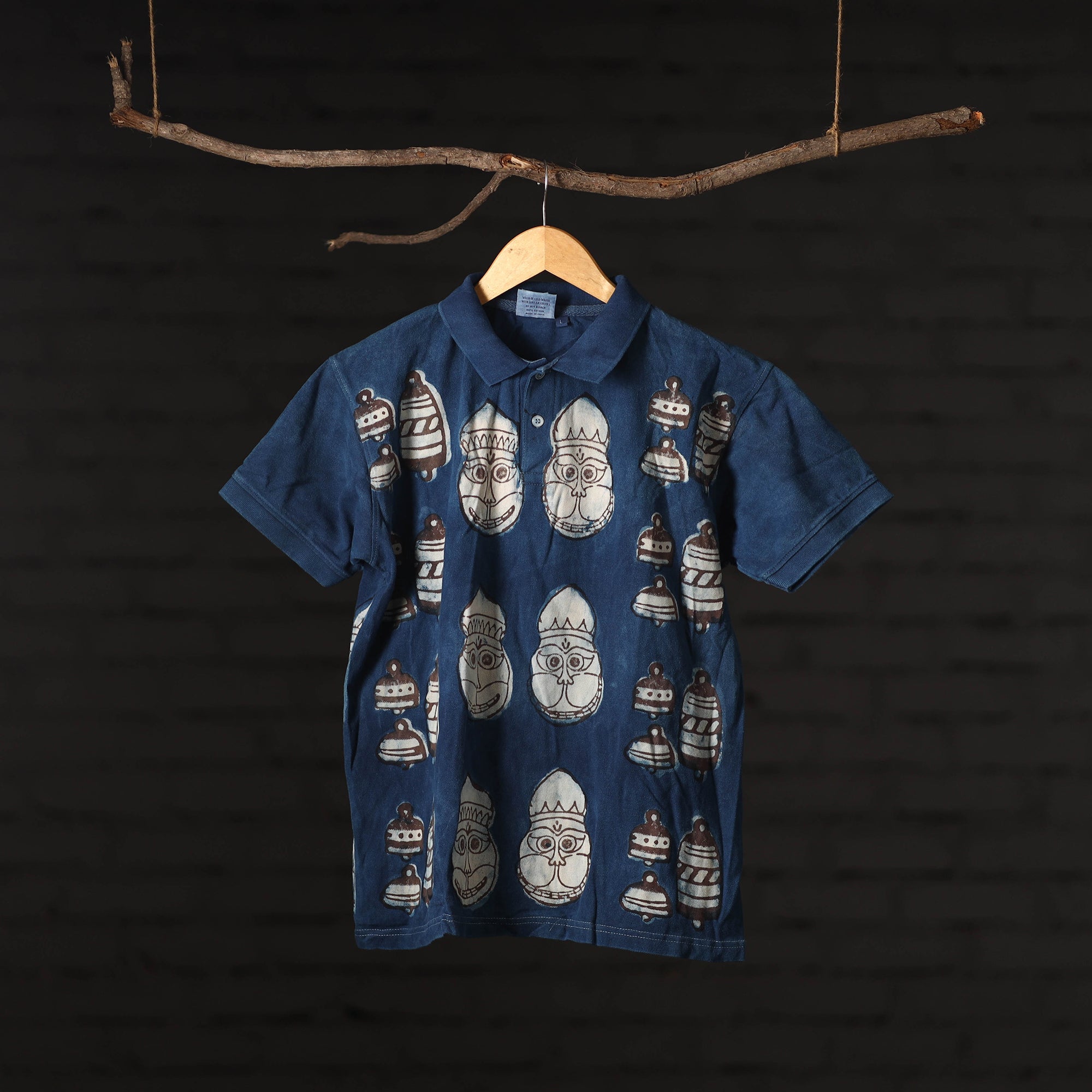 Fine quality pure cotton natural dyed special hand block printed unisex polo collar half sleeve t-shirt. Contemporary designs made through traditional processes, by skilled fourth generation textile printers in Rajasthan. This slow fashion, hand block printed cotton shirt brings back the love for traditional skills, with a modern aesthetic and design.