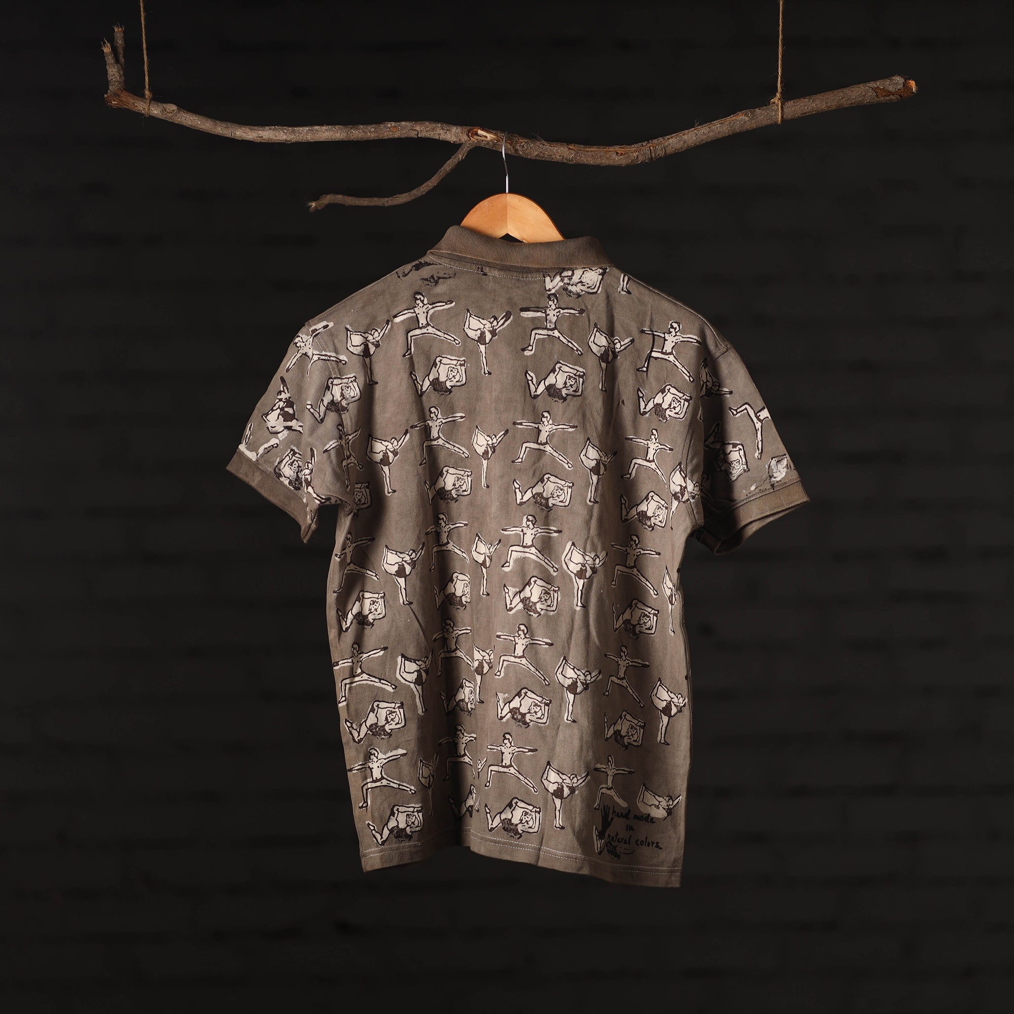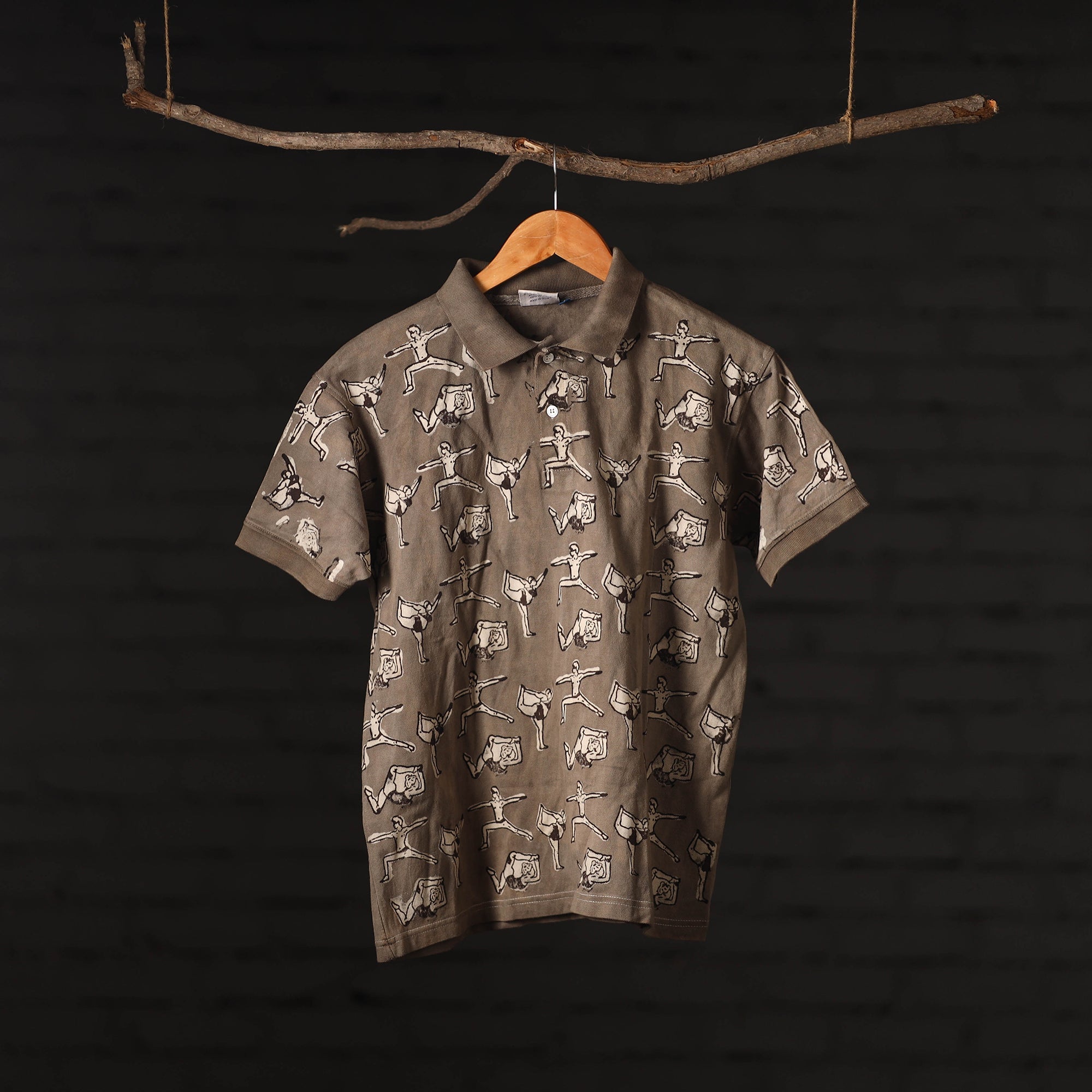 Fine quality pure cotton natural dyed special hand block printed unisex polo collar half sleeve t-shirt. Contemporary designs made through traditional processes, by skilled fourth generation textile printers in Rajasthan. This slow fashion, hand block printed cotton shirt brings back the love for traditional skills, with a modern aesthetic and design.