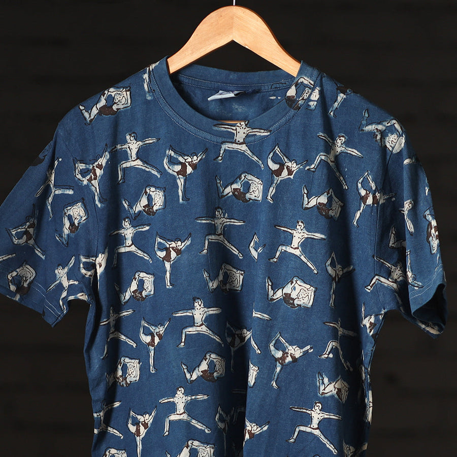 Fine quality pure cotton natural dyed special hand block printed unisex round neck half sleeve t-shirt. Contemporary designs made through traditional processes, by skilled fourth generation textile printers in Rajasthan. This slow fashion, hand block printed cotton shirt brings back the love for traditional skills, with a modern aesthetic and design.