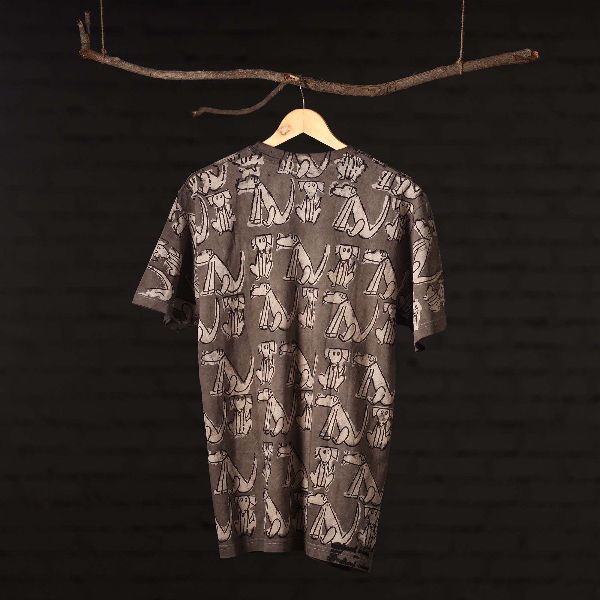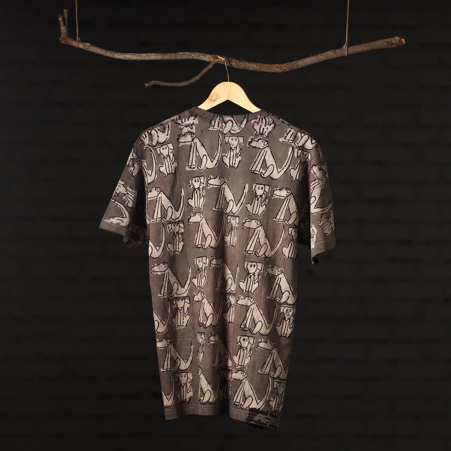 Fine quality pure cotton natural dyed special hand block printed unisex round neck half sleeve t-shirt. Contemporary designs made through traditional processes, by skilled fourth generation textile printers in Rajasthan. This slow fashion, hand block printed cotton shirt brings back the love for traditional skills, with a modern aesthetic and design.