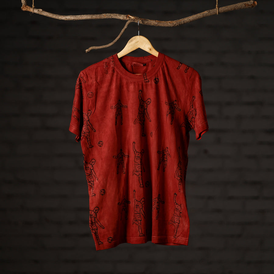 Fine quality pure cotton natural dyed special hand block printed unisex round neck half sleeve t-shirt. Contemporary designs made through traditional processes, by skilled fourth generation textile printers in Rajasthan. This slow fashion, hand block printed cotton shirt brings back the love for traditional skills, with a modern aesthetic and design.