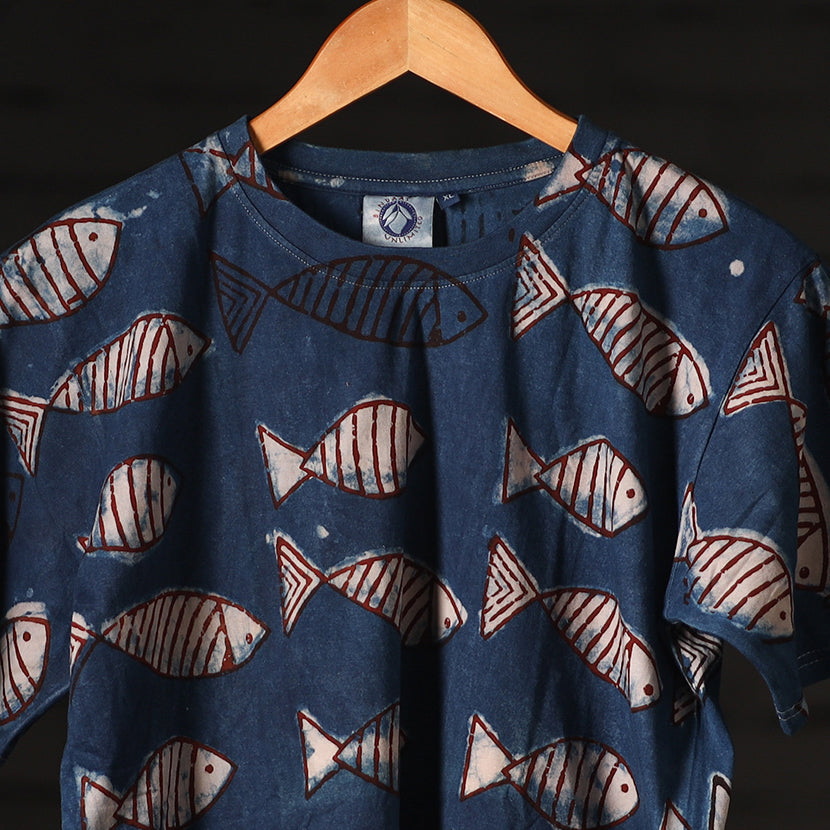 Fine quality pure cotton natural dyed special hand block printed unisex round neck half sleeve t-shirt. Contemporary designs made through traditional processes, by skilled fourth generation textile printers in Rajasthan. This slow fashion, hand block printed cotton shirt brings back the love for traditional skills, with a modern aesthetic and design.