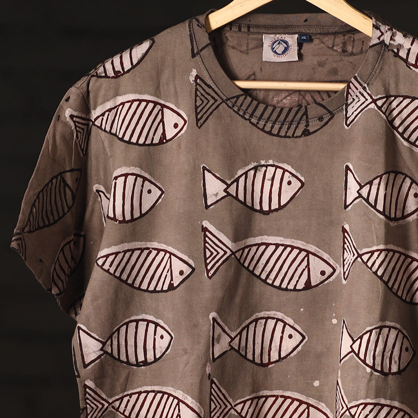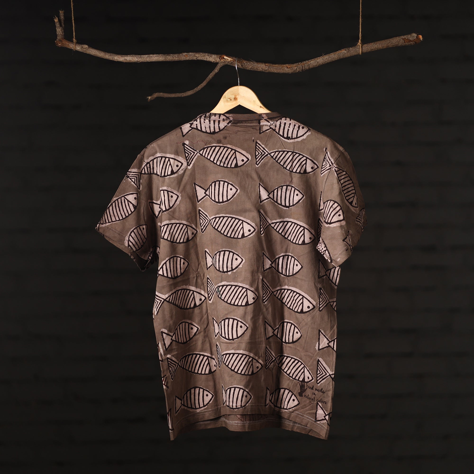 Fine quality pure cotton natural dyed special hand block printed unisex round neck half sleeve t-shirt. Contemporary designs made through traditional processes, by skilled fourth generation textile printers in Rajasthan. This slow fashion, hand block printed cotton shirt brings back the love for traditional skills, with a modern aesthetic and design.
