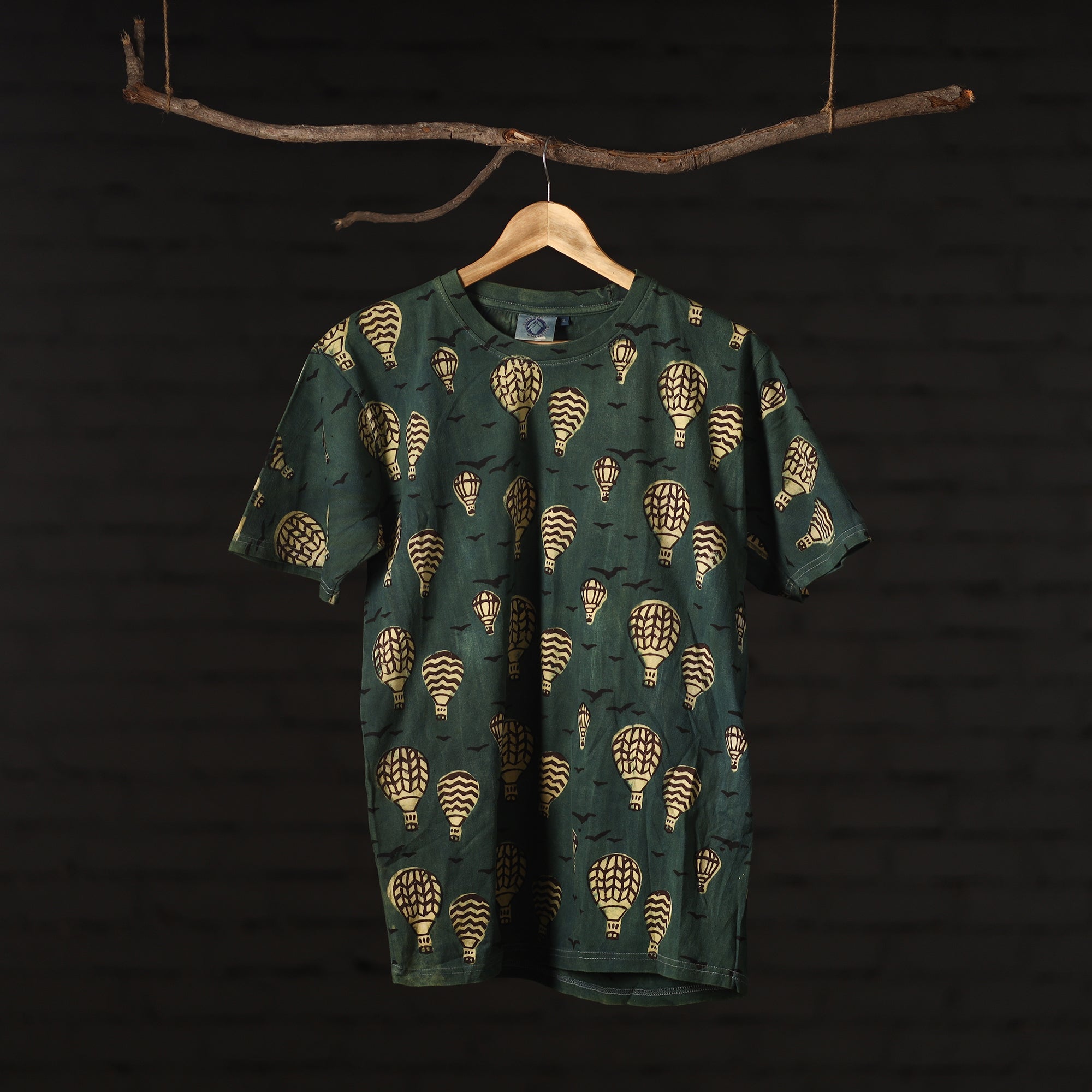 Fine quality pure cotton natural dyed special hand block printed unisex round neck half sleeve t-shirt. Contemporary designs made through traditional processes, by skilled fourth generation textile printers in Rajasthan. This slow fashion, hand block printed cotton shirt brings back the love for traditional skills, with a modern aesthetic and design.