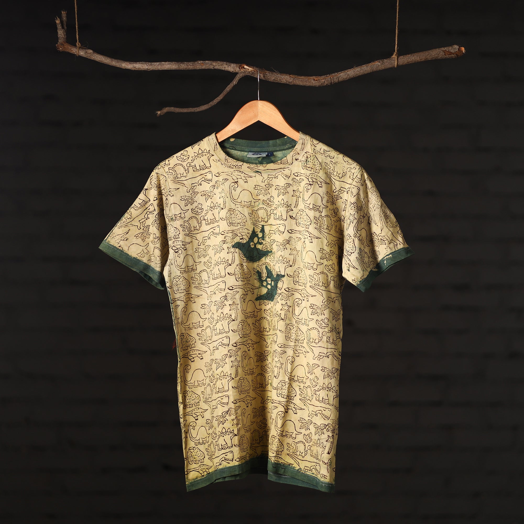 Fine quality pure cotton natural dyed special hand block printed unisex round neck half sleeve t-shirt. Contemporary designs made through traditional processes, by skilled fourth generation textile printers in Rajasthan. This slow fashion, hand block printed cotton shirt brings back the love for traditional skills, with a modern aesthetic and design.