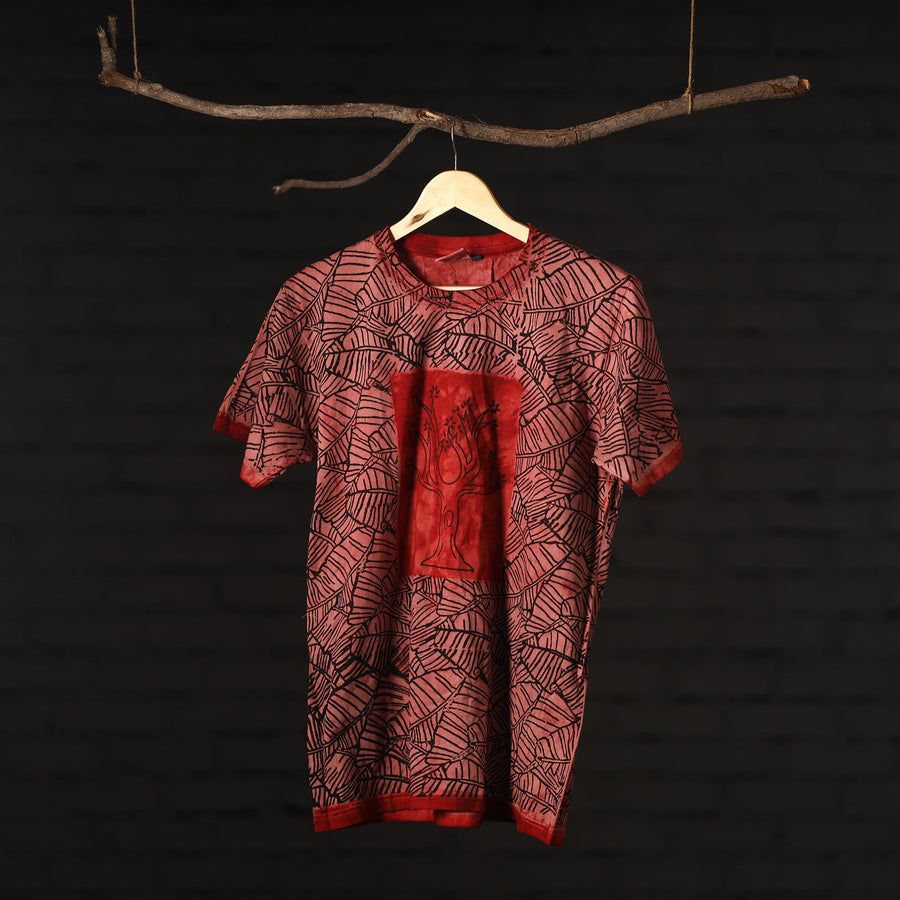 Fine quality pure cotton natural dyed special hand block printed unisex round neck half sleeve t-shirt. Contemporary designs made through traditional processes, by skilled fourth generation textile printers in Rajasthan. This slow fashion, hand block printed cotton shirt brings back the love for traditional skills, with a modern aesthetic and design.