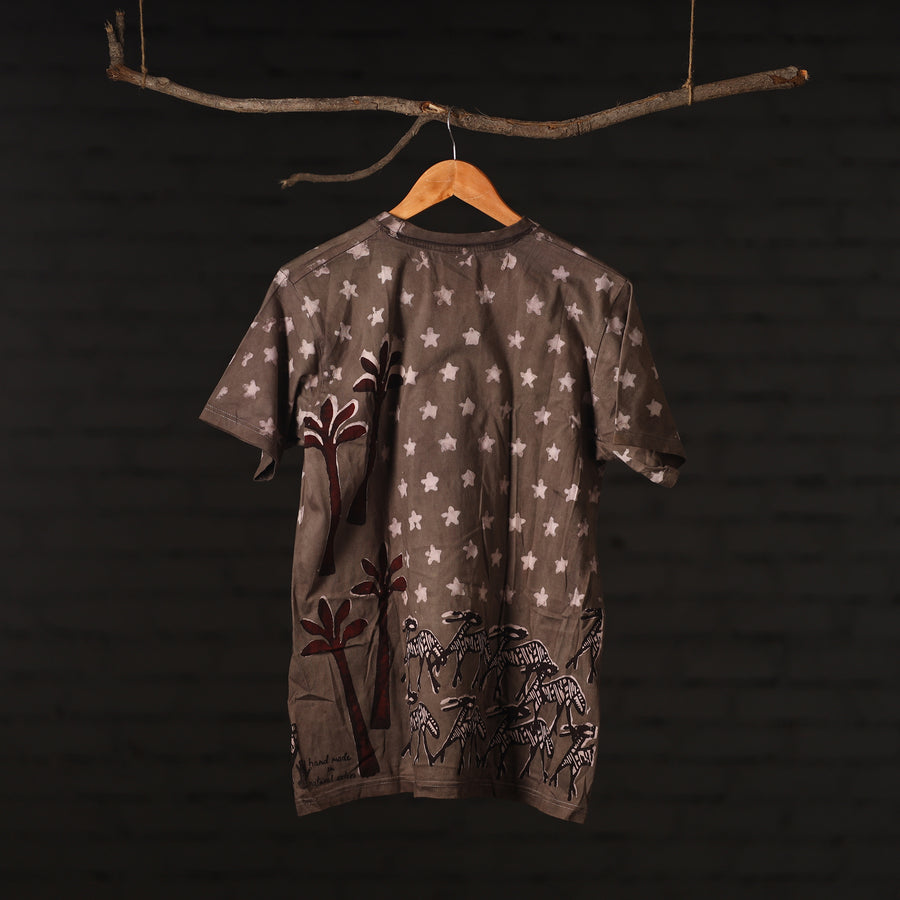 Fine quality pure cotton natural dyed special hand block printed unisex round neck half sleeve t-shirt. Contemporary designs made through traditional processes, by skilled fourth generation textile printers in Rajasthan. This slow fashion, hand block printed cotton shirt brings back the love for traditional skills, with a modern aesthetic and design.