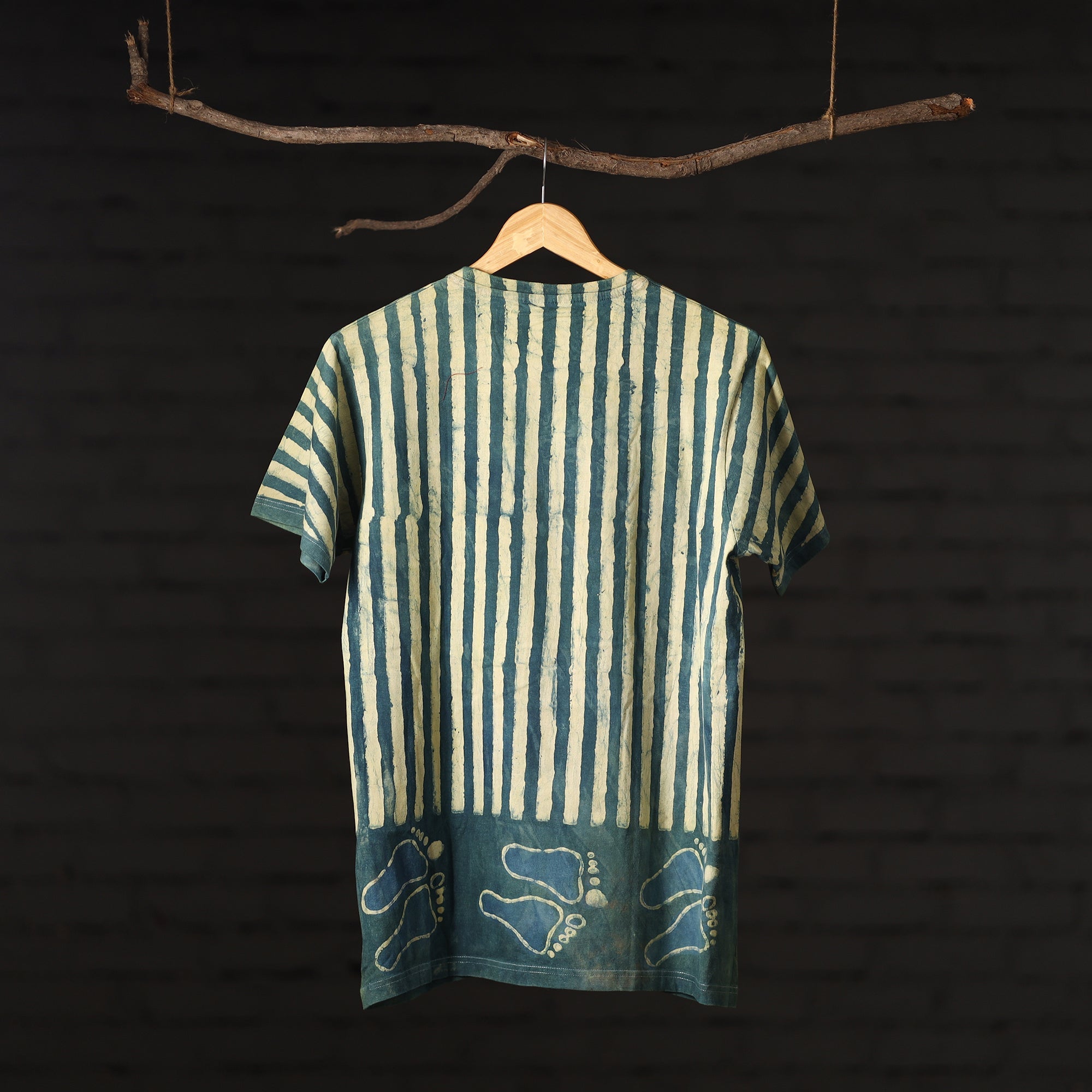 Fine quality pure cotton natural dyed special hand block printed unisex round neck half sleeve t-shirt. Contemporary designs made through traditional processes, by skilled fourth generation textile printers in Rajasthan. This slow fashion, hand block printed cotton shirt brings back the love for traditional skills, with a modern aesthetic and design.