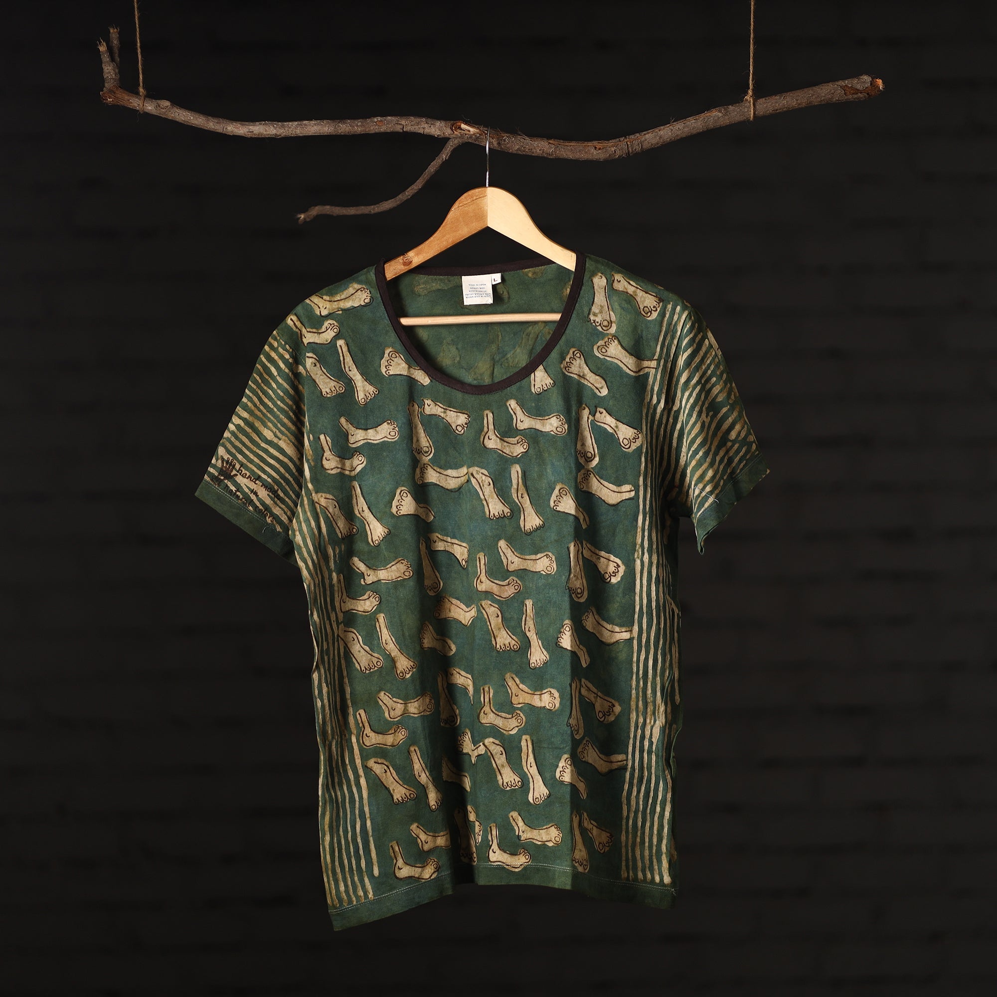Fine quality pure cotton natural dyed special hand block printed women round neck half sleeve t-shirt. Contemporary designs made through traditional processes, by skilled fourth generation textile printers in Rajasthan. This slow fashion, hand block printed cotton shirt brings back the love for traditional skills, with a modern aesthetic and design.