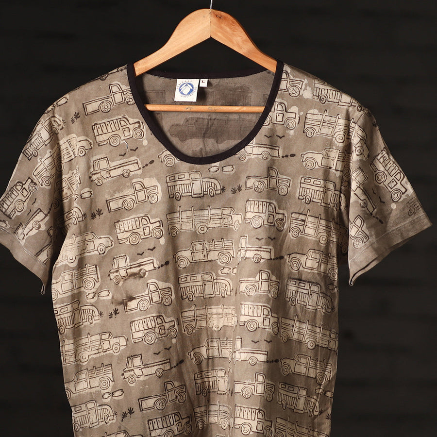 Fine quality pure cotton natural dyed special hand block printed women round neck half sleeve t-shirt. Contemporary designs made through traditional processes, by skilled fourth generation textile printers in Rajasthan. This slow fashion, hand block printed cotton shirt brings back the love for traditional skills, with a modern aesthetic and design.