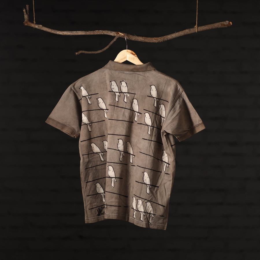 Fine quality pure cotton natural dyed special hand block printed unisex polo collar half sleeve t-shirt. Contemporary designs made through traditional processes, by skilled fourth generation textile printers in Rajasthan. This slow fashion, hand block printed cotton shirt brings back the love for traditional skills, with a modern aesthetic and design.