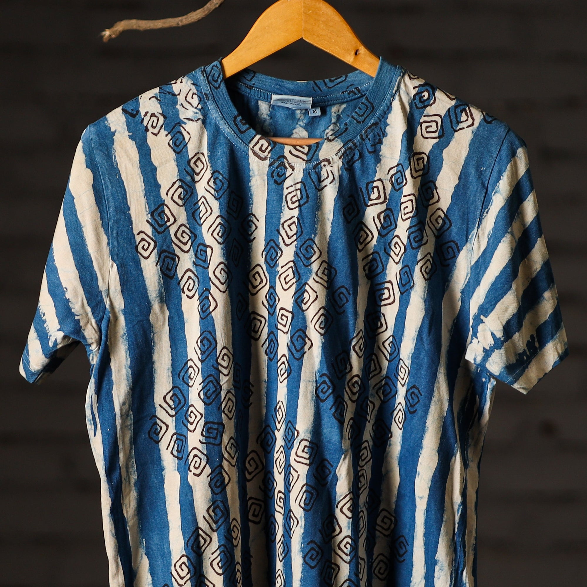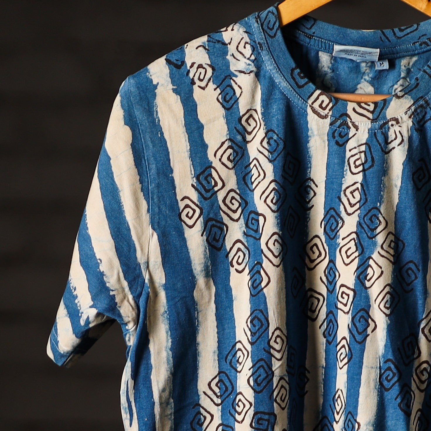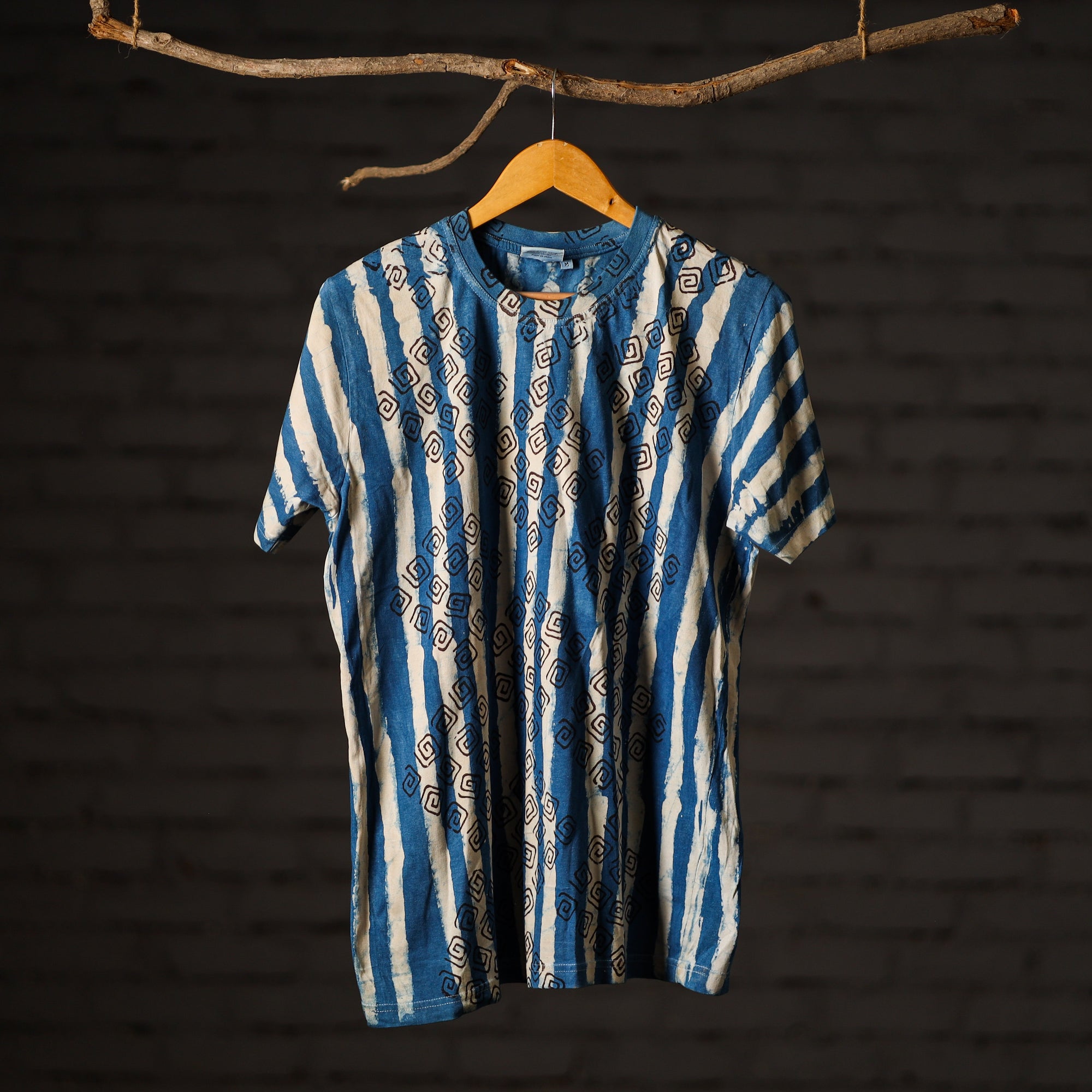 Fine quality pure cotton natural dyed special hand block printed unisex round neck half sleeve t-shirt. Contemporary designs made through traditional processes, by skilled fourth generation textile printers in Rajasthan. This slow fashion, hand block printed cotton shirt brings back the love for traditional skills, with a modern aesthetic and design.