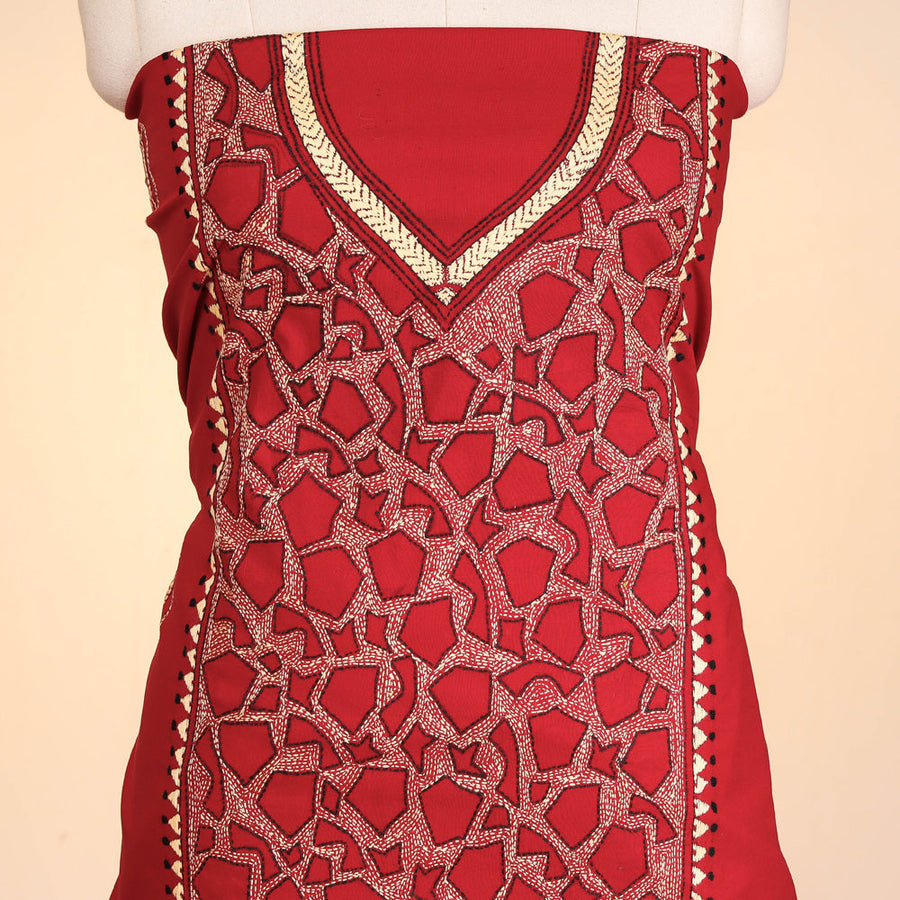 Fine quality original Bengal kantha work pure cotton kurta material, designed with contemporary patterns & has been hand embroidered using West Bengal's traditional craft technique of Kantha.