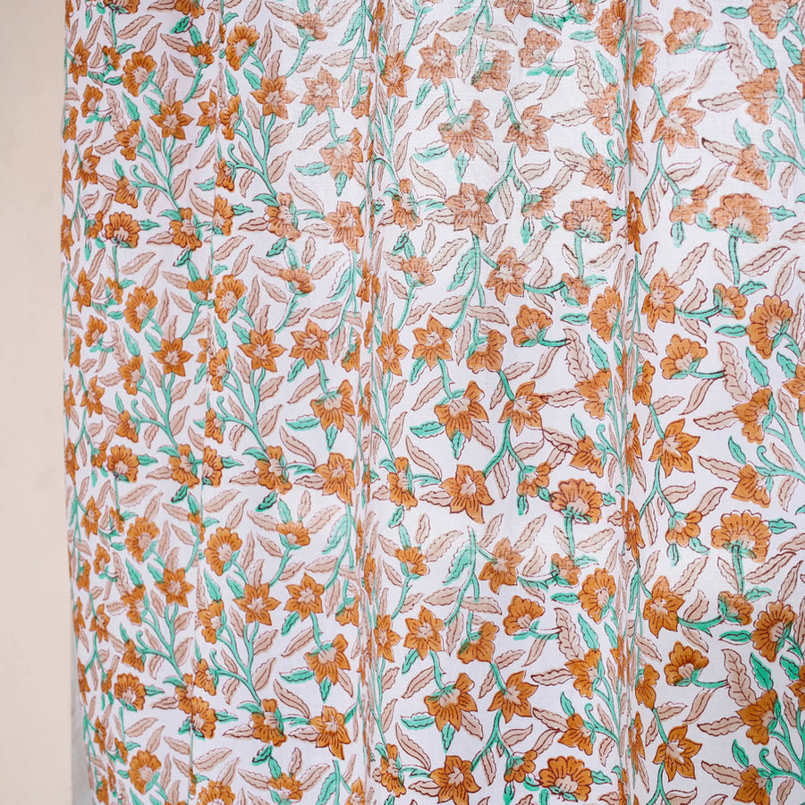Fine quality sanganeri pure cotton fabric window curtain. Add an ethnic feel to any room in your house by adding this curtain to your exquisite home decor collection. Sanganeri is a hand-block printing technique originating from Sanganer, a village in the southern part of Jaipur, Rajasthan. Bleed free VAT dyes used.