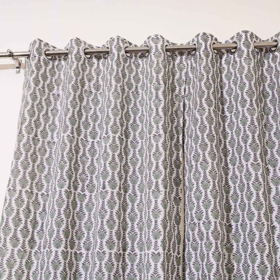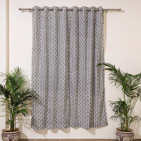 Fine quality grey sanganeri block print pure cotton door curtain. Add an ethnic feel to any room in your house by adding this curtain to your exquisite home decor collection. Sanganeri is a hand-block printing technique originating from Sanganer, a village in the southern part of Jaipur, Rajasthan. Bleed free VAT dyes used.