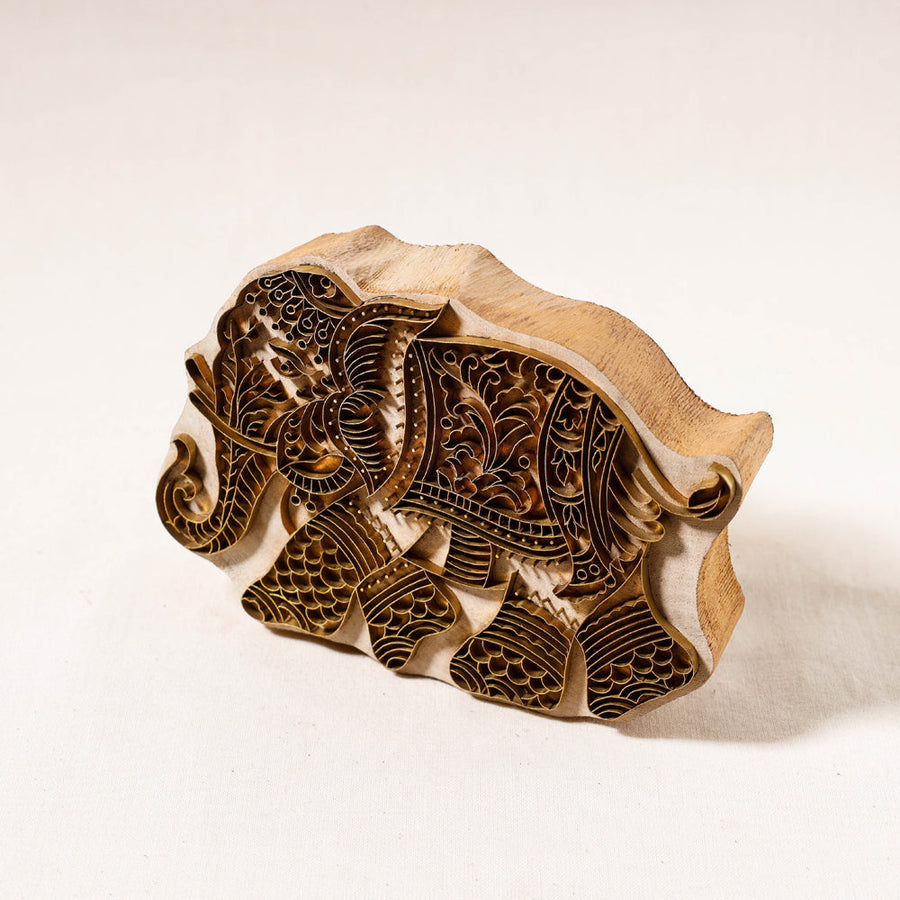 Hand-carved natural rohida wood block with brass. Actual blocks used for block printing. These can also be used as decoration.