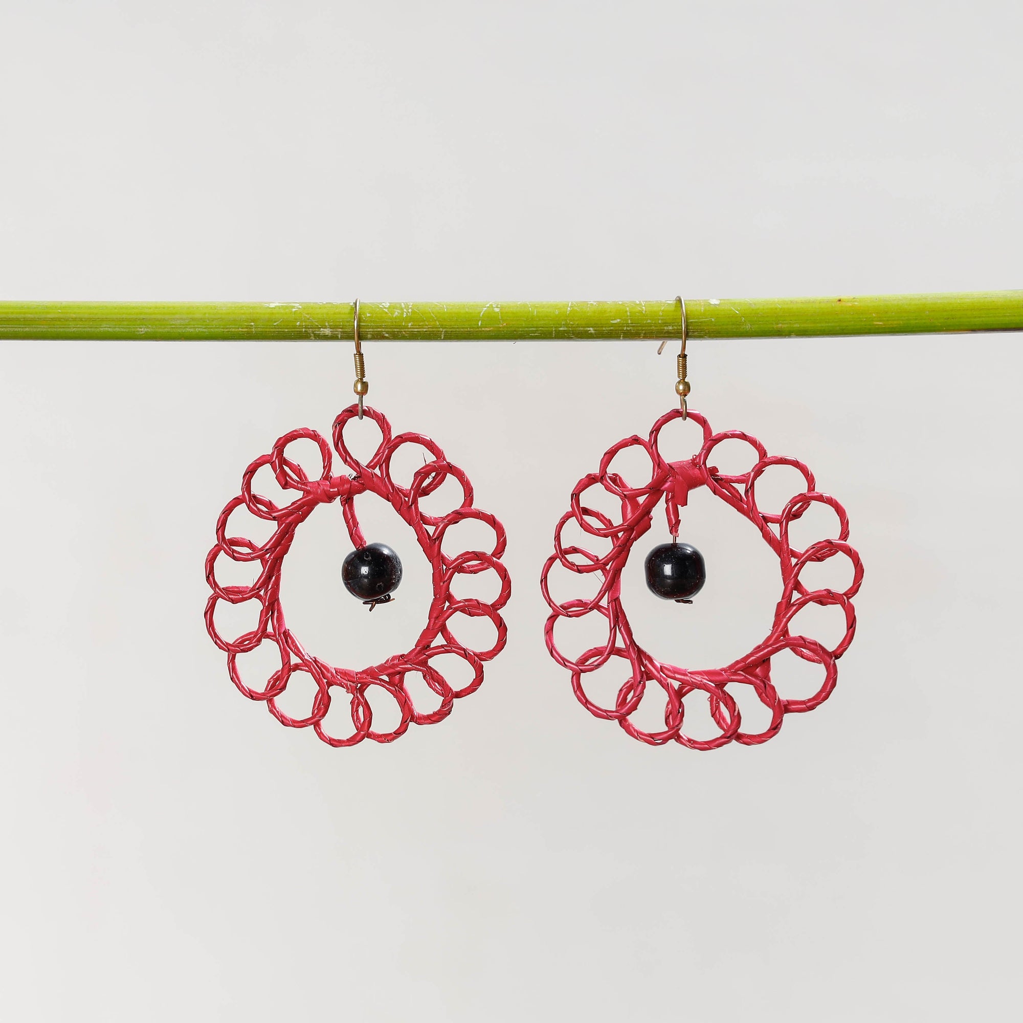 Pink handcrafted sikki grass weaved earrings, made with natural sikki grass & copper.