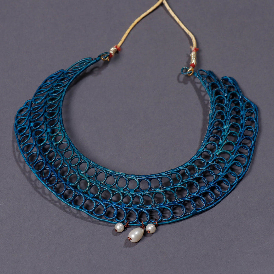 Green handcrafted sikki grass weaved necklace, made with natural sikki grass & copper.