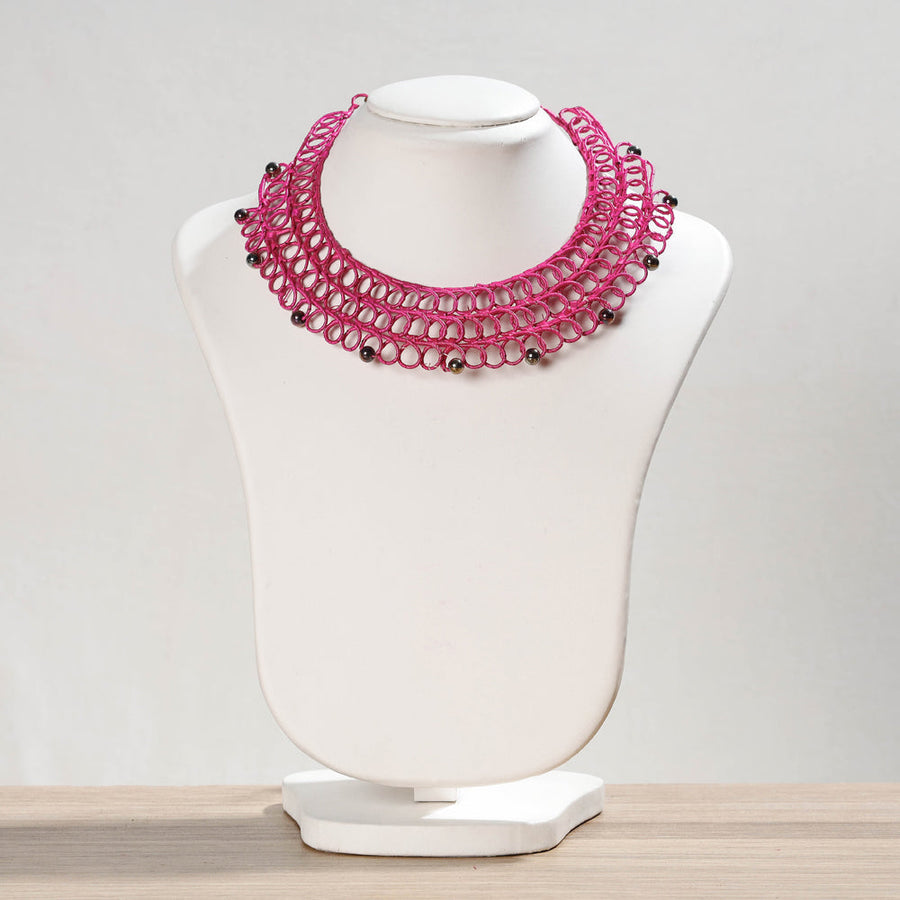 Pink handcrafted sikki grass weaved necklace, made with natural sikki grass & copper.