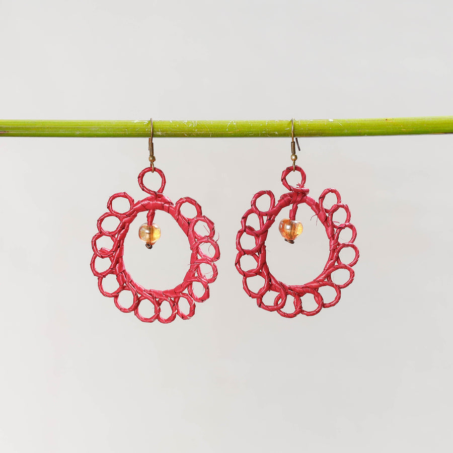 Pink handcrafted sikki grass weaved earrings, made with natural sikki grass & copper.