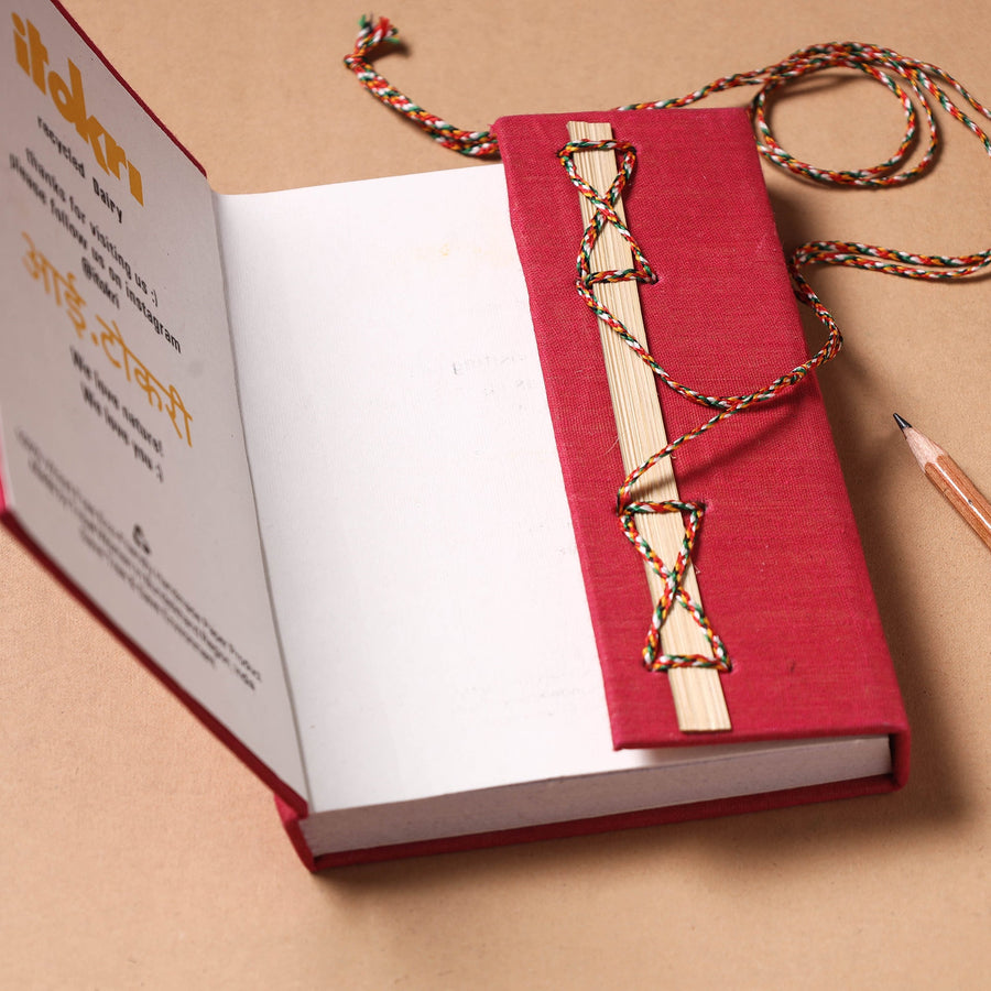| Material | Fabric embellished hard bound cover thread lock notebook with handmade papers. This paper is made of cotton, paper and other natural fibre waste recycled in an eco-friendly manner without the use of chemicals. Hand made by master artisans who maintain careful personal attention to detail. They are highly skilled in a variety of bookbinding and handmade stationery manufacturing techniques. |