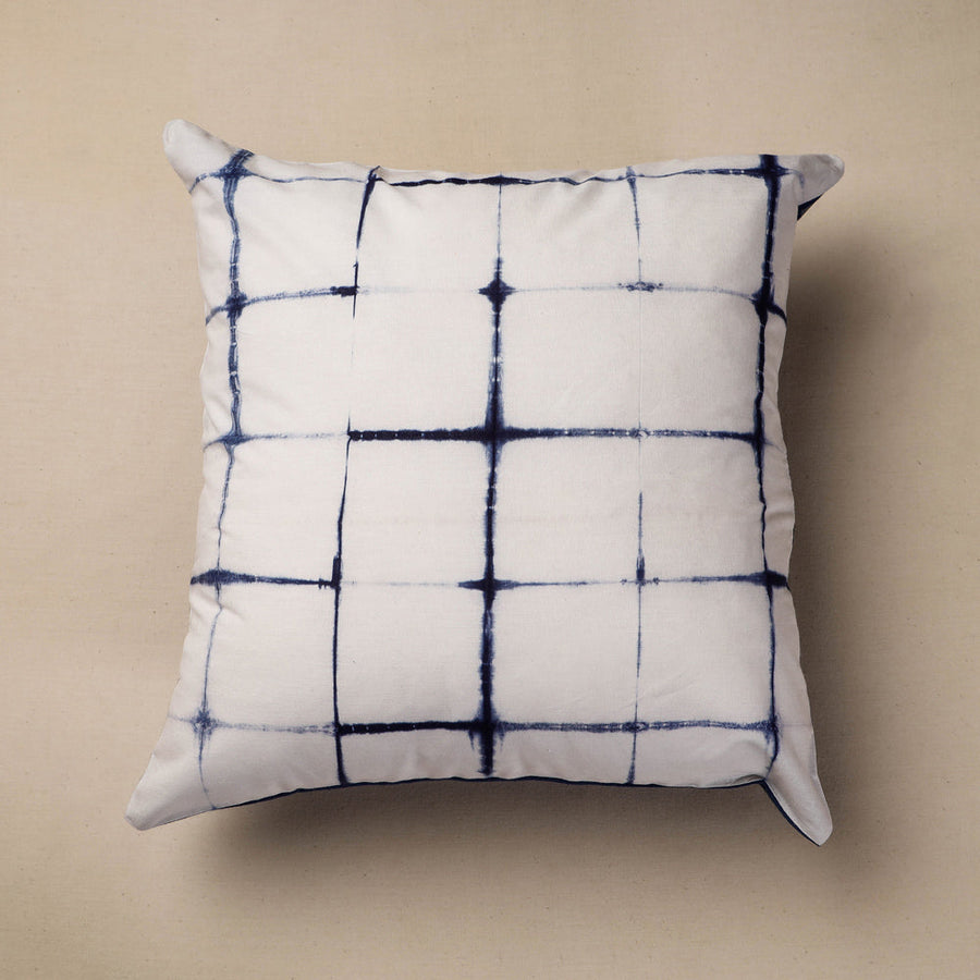 Fine quality shibori tie-dye pure cotton cushion cover. (hand dyed using shibori tie and dye technique in which the fabric is tied using clamp or stitches in the required design and the pattern is dyed)
