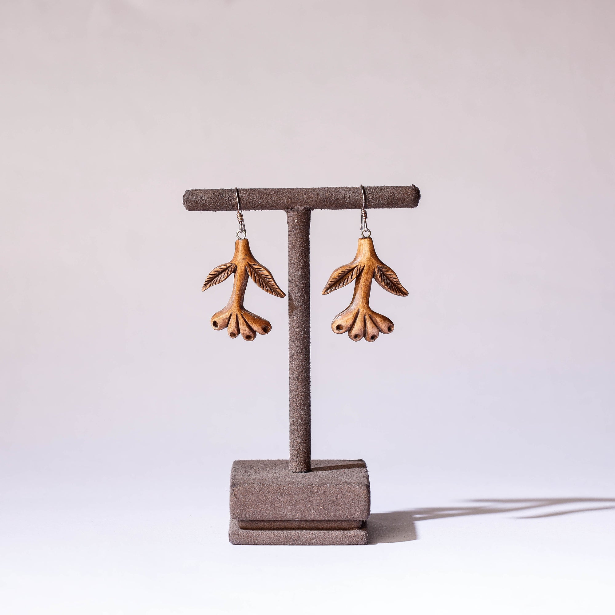 Fine brown hand carved wooden earrings made of using natural wood. These wooden earrings has been carved by the master artisans of Rajasthan.